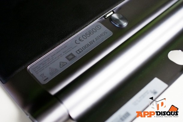 ฝาหลังบุด้วยวัสดุคล้ายหนัง แน่นอนว่ามันต้องออกมาดูดีมากอยู่แล้ว เพราะทาง Lenovo ตั้งใจออกแบบมาให้เจ้า Yoga Tab 3 Pro ตัวนี้เป็นแท็บเล็ตที่มาในระดับตลาดบนสุดของซีรีย์เลย ใส่เทคโนโลยีเข้ามามากมาย สามารถกันน้ำกระเซ็นได้ในระดับหนึ่งด้วย เดี๋ยวเราไปไล่ดูกันครับว่า ในเรื่องของการใช้งานมันจะมีดีมากแค่ไหน