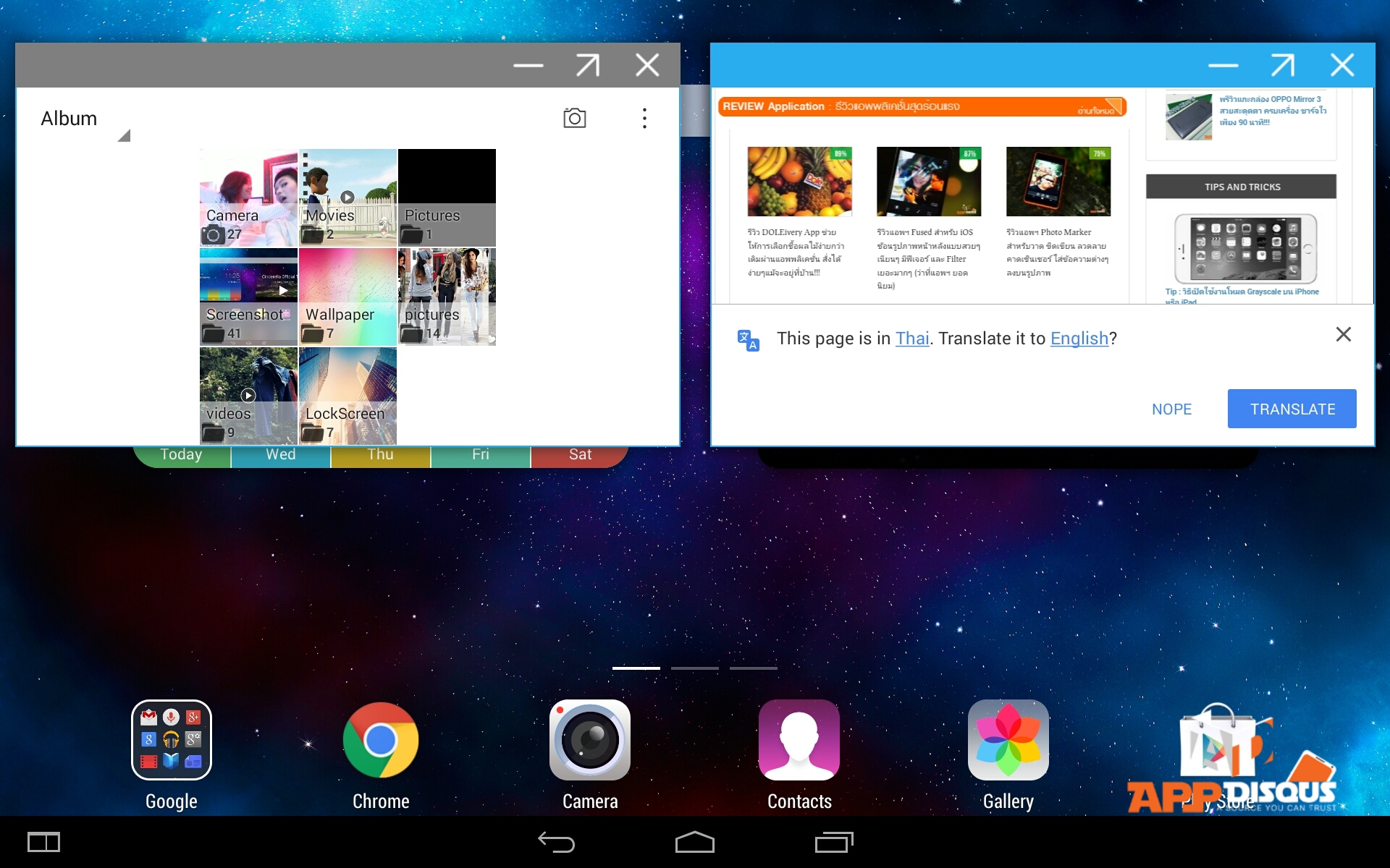 มีโหมดการทำงานแบบมัลติวินโดวด้วยนะครับ เปิดแอพพลิเคชั่นหลายๆ แอพขึ้นมาเป็นหน้าต่างเล็กๆ เพื่อทำงานพร้อมกัน เช่นการเปิดดูเว็บไซด์แล้วเราก็สามารถเปิดแอพเครื่องคิดเลขขึ้นมาใช้งานได้ ก็สะดวกดีครับ การทำงานก็ไหลลื่นดี ลองเปิดมาหลายๆ แอพพลิเคชั่นพร้อมกันแล้วก็ยังทำงานได้ไหวสบายๆ ครับ