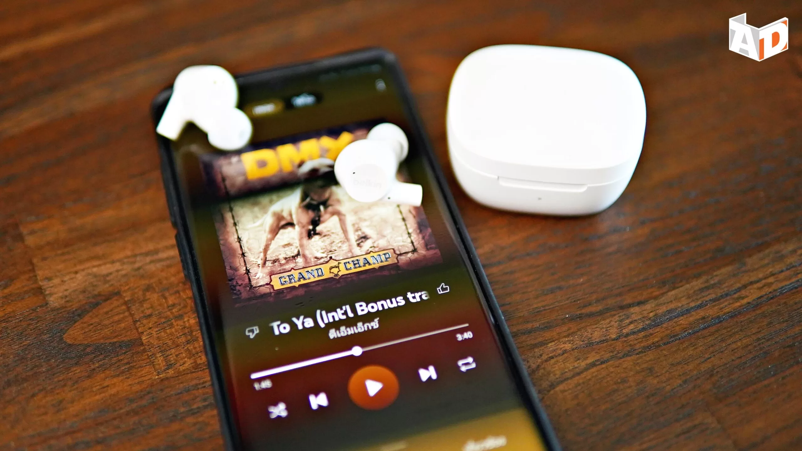 ตัวหูฟังแบบก้านสั้นสีขาวสกรีนโลโก้ belkin ใส่กระชับใบหู ใส่วิ่งออกกำลังกายได้ไม่หลุดง่ายค่ะ มาตรฐาน IPX5 มีคุณสมบัติกันเหงื่อ กันละอองน้ำได้ให้คุณใช้งานได้อย่างมั่นใจ