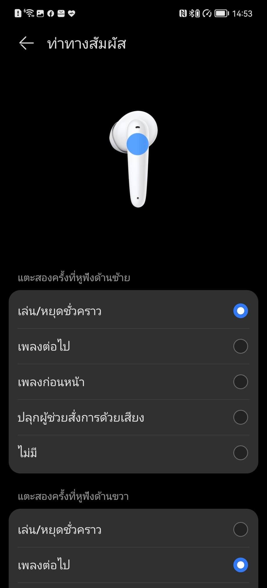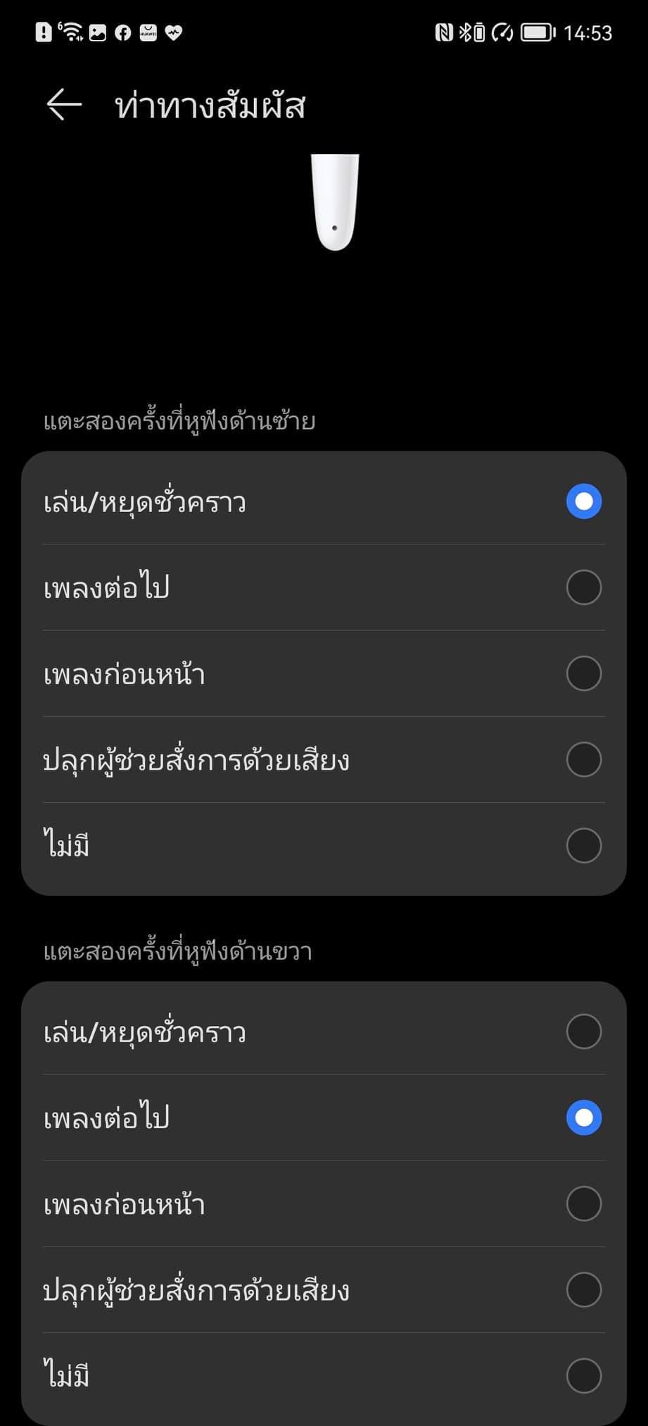 - แตะสองครั้งเพื่อหยุดชั่วคราวและเล่นต่อ หรือรับสายและวางสาย หรือจะสลับเป็นเพลงก่อนหน้า/ถัดไป