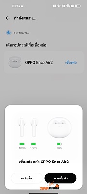 แค่เพียงเราเปิดฝาเคสของหูฟัง อุปกรณ์สมาร์ทโฟน OPPO ที่อยู่ใกล้ๆ ถ้าเปิดสัญญาณบลูทูธเอาไว้ ก็พบเจอกันและพร้อมเชื่อมต่อใช้งานได้ทันทีเลย