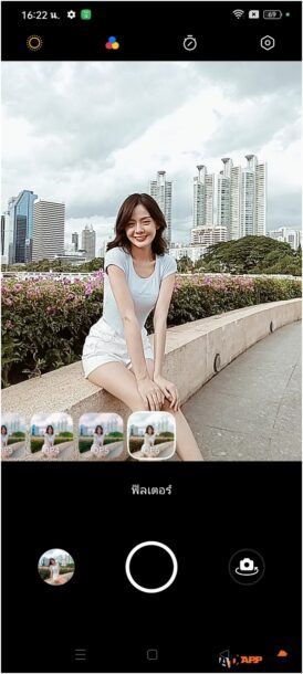 โหมดถ่ายภาพบุคคล เลือกระดับชัดลึกชัดตื้นและใส่ฟิลเตอร์ปรับสีภาพได้หลายฟิลเตอร์ครับ