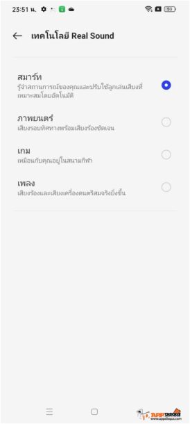 มีระบบปรับแต่งเสียง Dirac 3.0 ปรับจูนเสียงให้เหมาะกับคอนเทนต์ที่เรากำลังใช้งานได้อัตโนมัติ