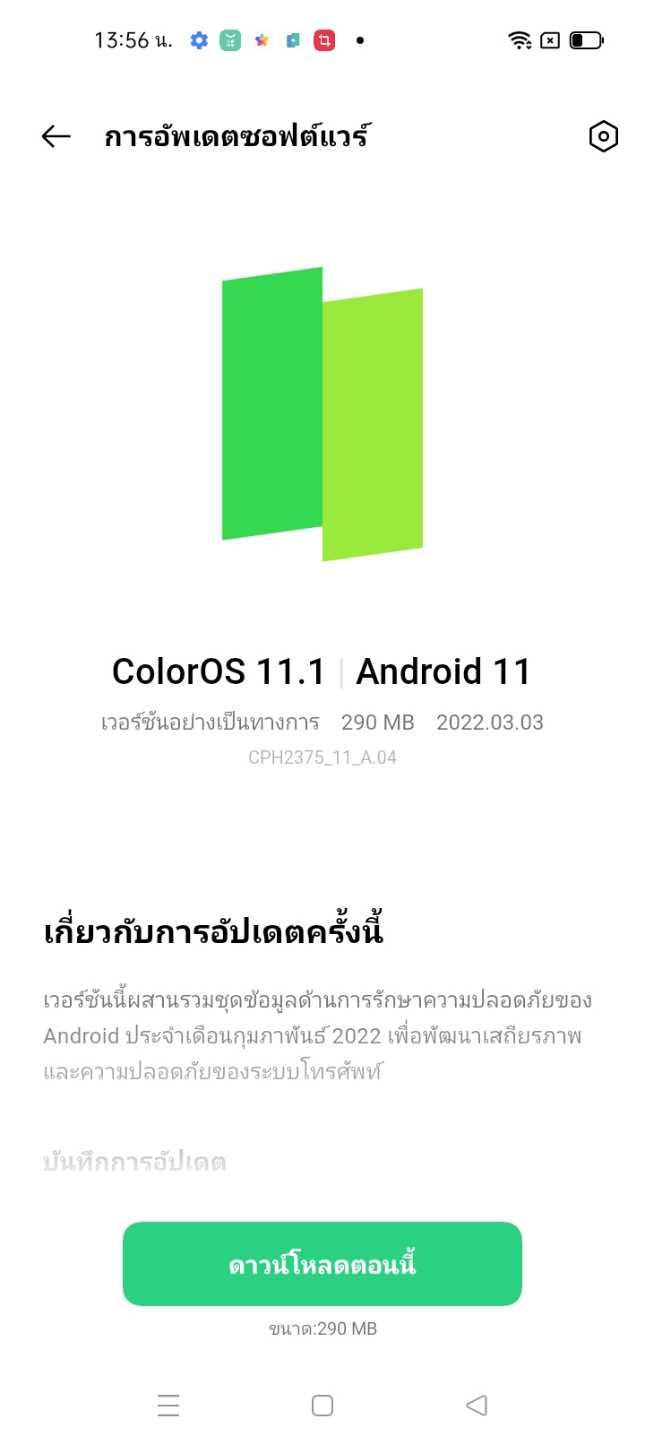 ใช้ระบบปฏิบัติการ ColorOS 11.1 ใช้งานที่ลื่นไหลและใช้งานได้ครบครันยิ่งขึ้น โดยได้รับการออกแบบมาเพื่อเป็นเครื่องมือที่ช่วยในการพัฒนาความลื่นไหลและลดภาระของระบบ นอกจากนี้ยังมีฟีเจอร์ความเป็นส่วนตัวแบบอัปเกรดเพื่อให้โลกดิจิทัลของผู้ใช้งานมีความปลอดภัยอีกด้วย จากที่เคยทดสอบใช้งานมา ผมยังไม่เคยเจออาการรีสตาร์ท ค้าง หรือรวนให้เห็นเลย ทำดีมาหลายรุ่นต่อเนื่องแล้ว