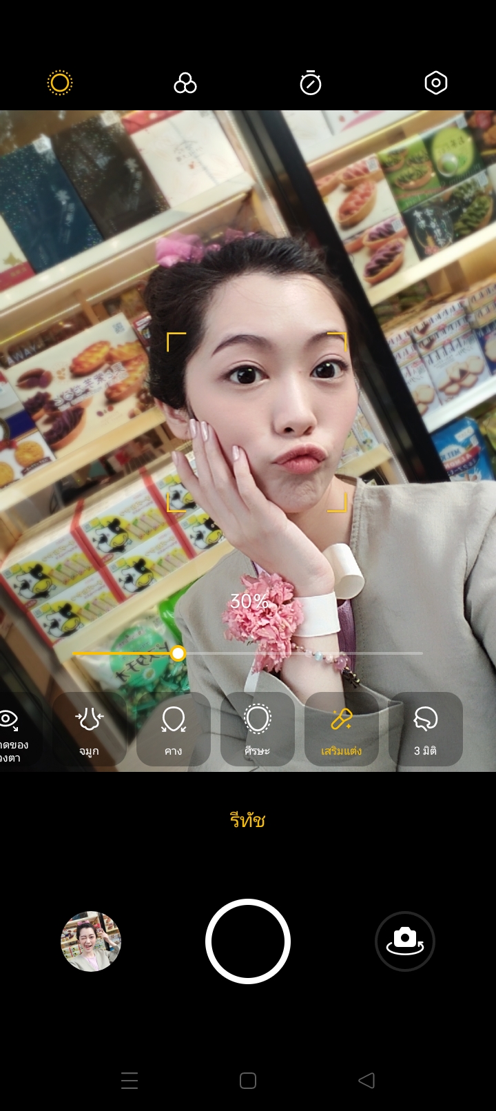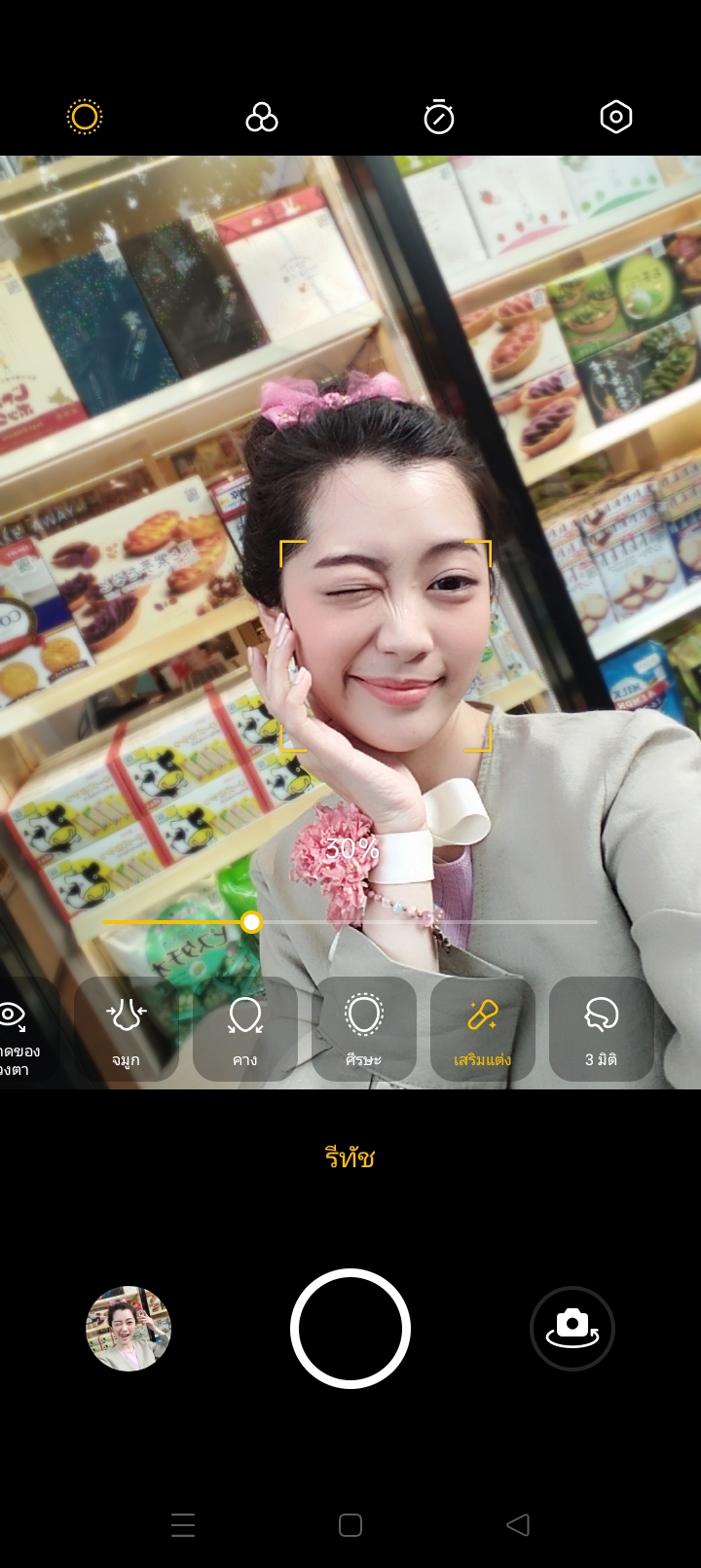 นอกจากนี้ยังเพิ่มลูกเล่นของกล้องหน้าด้วยฟีเจอร์รีทัชปรับแต่งรูปหน้า ปรับหน้าเรียว ตาโต ผิวเนียนใส สวยในแชะเดียวแบบไม่ต้องไปแต่งในแอพพลิเคชั่นอื่นเพิ่ม พร้อมกับฟิลเตอร์แนวสีต่างๆ เพื่อเปลี่ยนอารมณ์ของภาพให้เป็นสีที่เราต้องการครับ
