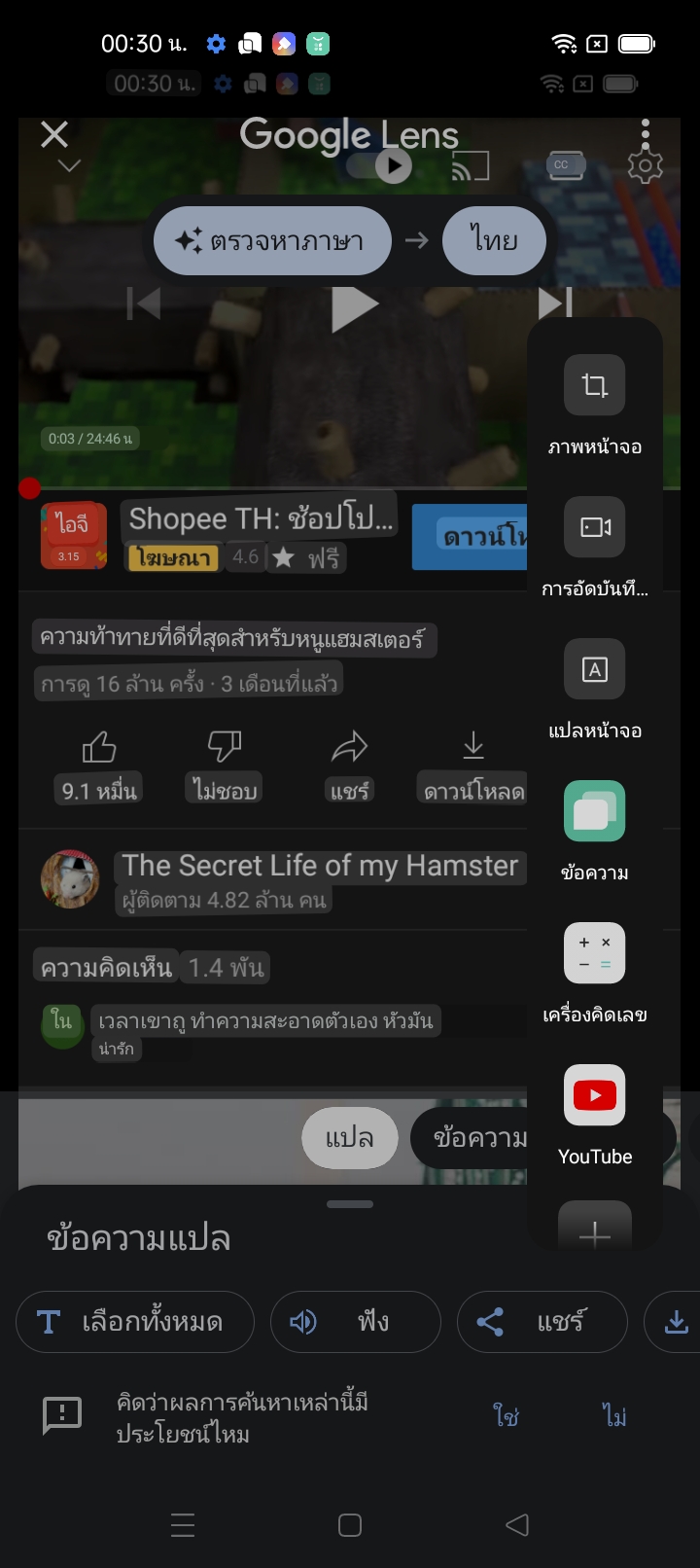ColorOS ทำงานร่วมกับ Google Lens ช่วยให้ผู้ใช้งานสามารถแปลภาษาข้อความในแอป หน้าเว็บ และรูปภาพเป็นภาษาที่ต้องการได้ โดยผู้ใช้งานสามารถเปิดใช้งาน Google Translate ได้อย่างง่ายดายเมื่อปัดสามนิ้วเพื่อแคปภาพหน้าจอบางส่วนหรือใน Smart Sidebar