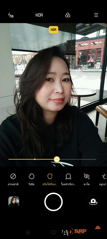 ในกล้องของ OPPO มีการใส่ฟิลเตอร์ต่างๆ เพื่อเพิ่มความสนุกในการใช้ถ่ายภาพไว้เยอะครับ รวมถึงการปรับแต่งใบหน้าเนียนสวยได้ด้วย AI Beauty เซลฟี่ก็จะหน้าเนียนสวยได้ง่ายๆ ตามระดับที่เราต้องการ