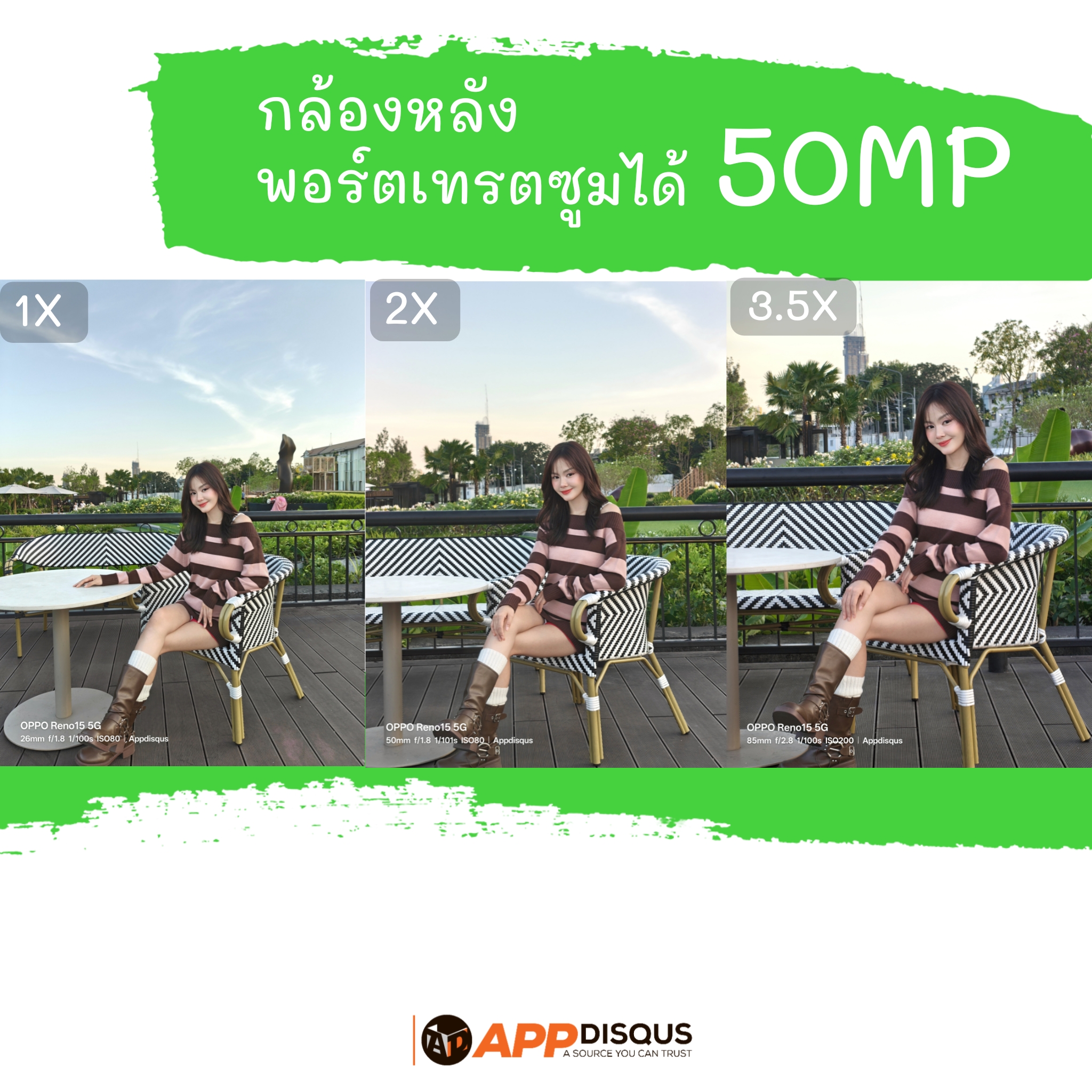 กล้องของ OPPO Reno 15 5G รองรับการซูมตั้งแต่ 0.6x ไปจนถึง 120x เลยนะครับ แต่จุดเด่นคือการซูมในระยะ 3.5x เป็นการซูมด้วยเลนส์จริงไม่ใช่ซอฟท์แวร์ จึงเป็นระยะที่ดูคมเหมือนเดินเข้าไปถ่าย