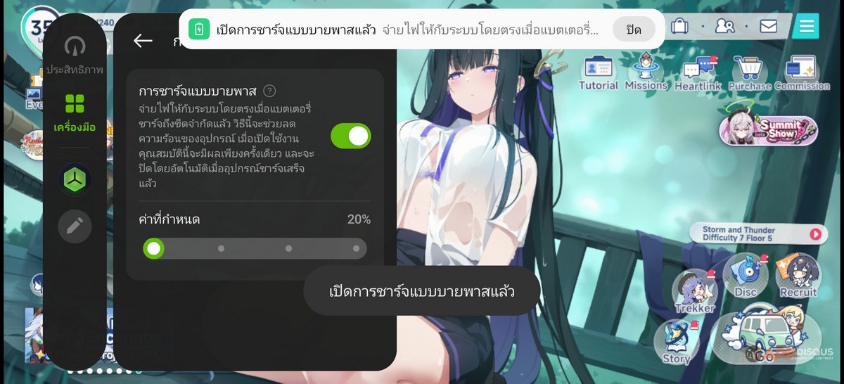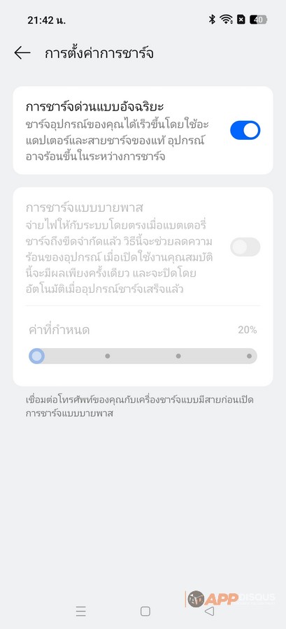 มีระบบการชาร์จแบบบายพาส ส่งไฟเข้าตัวเครื่องโดยตรงเมื่อพลังงานในแบตเตอรี่ถึงระดับที่เรากำหนดไว้แล้ว จะช่วยรักษาอุณหภูมิในขณะใช้งานพร้อมชาร์จไฟได้ดีขึ้น เล่นเกมก็จะได้เฟรมเรทที่เสถียรขึ้น และช่วยยืดอายุของตัวแบตเตอรี่ไปด้วยอีกทางหนึ่ง