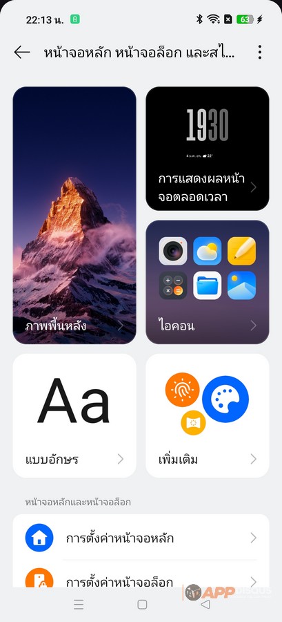 หน้าจอล็อคสกรีนและวอลล์เปเปอร์แบบเคลื่อนไหว ที่ใส่เข้ามาให้ก็งดงามมากแล้ว แถมยังปรับแต่งได้เองอิสระ แทรกภาพ ปรับรูปแบบ เปลี่ยนเลย์เอาท์ ปรับ Widget ทุกอย่างทำมาอย่างละเอียด แค่เลือกรูปแบบที่ชอบ เลือกรูปภาพที่ใช่ แล้วปรับแต่งเองตามใจได้เยอะมาก