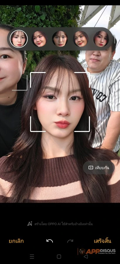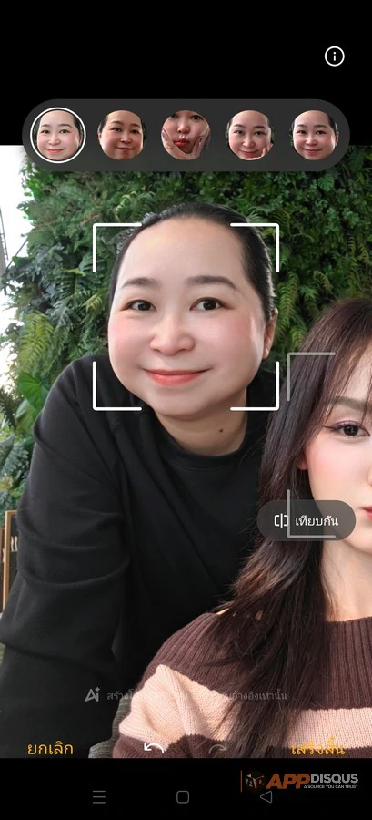 เป็นฟังก์ชั่นการแก้ไขใบหน้าบุคคลในภาพ ทั้งภาพเดี่ยวหรือภาพกลุ่ม ที่ AI จะใช้ใบหน้าของเราเองจากในประวัติการถ่าย นำมาใส่ทับบนหน้าที่เราไม่ชอบ เช่น ภาพที่เราลืมยิ้ม หรือมีใครบางคนไม่มองกล้อง เราสามารถเข้าโหมด AI แก้ไขใบหน้าแบบรายบุคคลได้ เลือกหน้าใหม่มาทับหน้าเก่า ภาพที่พลาดไปก็แก้ไขได้ในภายหลังแบบนี้ครับ