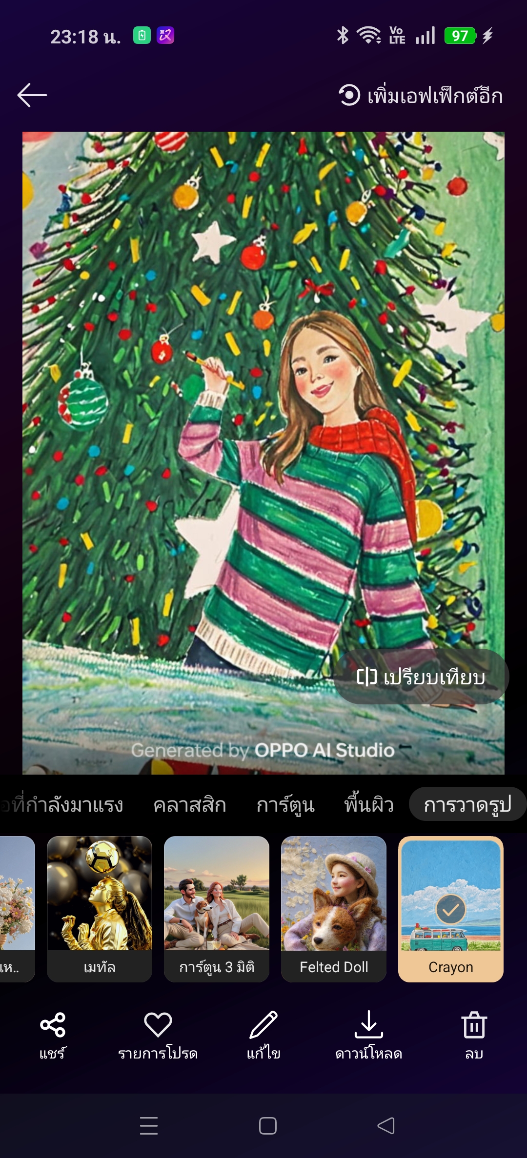 AI Studio เป็นแอปพลิเคชั่นบริการตัวหนึ่งที่อยู่ใน OPPO Reno 15 5G มันสามารถเปลี่ยนแปลงภาพถ่ายของเราให้กลายเป็นสไตล์อื่น หรือเปลี่ยนภาพนิ่งให้มีการเคลื่อนไหว และสามารถเปลี่ยนแนวภาพถ่าย ไปเป็นภาพวาดสีน้ำมัน, ภาพการ์ตูน, ภาพ CG หรือภาพวาดสีไม้ลายเส้นเด็ก เป็นต้น สามารถใช้งานได้ฟรีจากเครดิตที่จะแจกให้หลังเราเข้าไปเช็คอินภายในแอปครับ