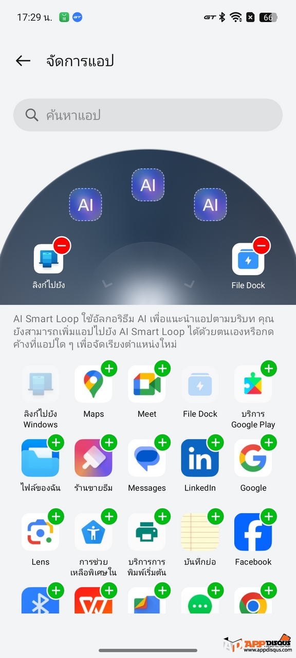 แต่ในเริ่มต้นต้องเข้าไปเปิดการใช้งานก่อนนะครับ ไปที่ การตั้งค่า – ฟีเจอร์พิเศษ – AI Assistant – AI Smart Loop ระบุเลือกแอปที่เรานิยมใช้ใส่เข้าไปในวงแหวน