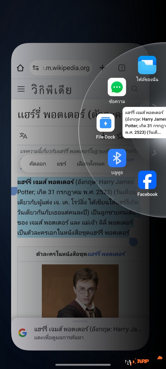 ส่วน File Dock มันเป็นพื้นที่พิเศษ ที่เราสามารถลากทุกอย่างเข้าไปเก็บไว้ใน ทั้งข้อความที่คัดลอกมา หรือรูปภาพ รวมถึงเวลาที่ใช้ความสามารถของ AI เพื่อดึงบุคคลออกมาจากภาพ เราก็สามารถนำมาเก็บไว้ใน File Dock และเรียกใช้เป็นสติ๊กเกอร์เพื่อตกต่างภาพอื่นๆ หรือส่งต่อไปให้เพื่อนได้ในภายหลังได้ครับ
