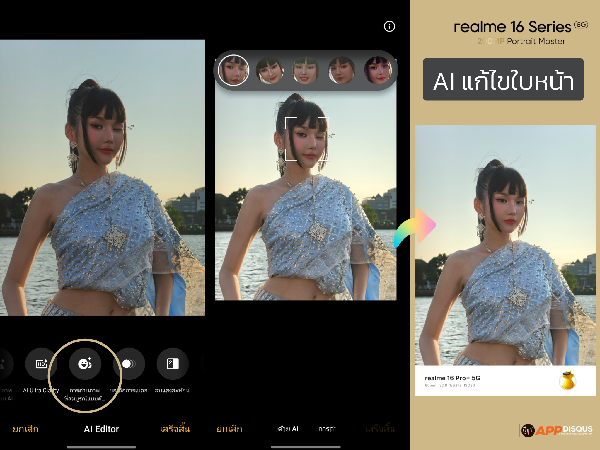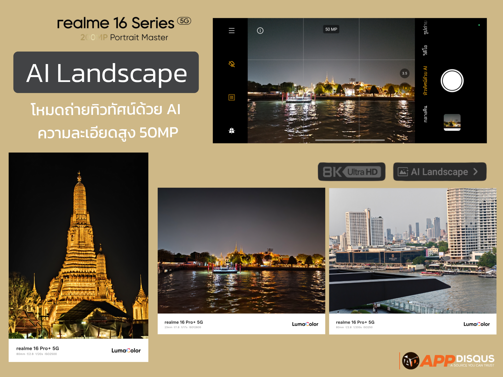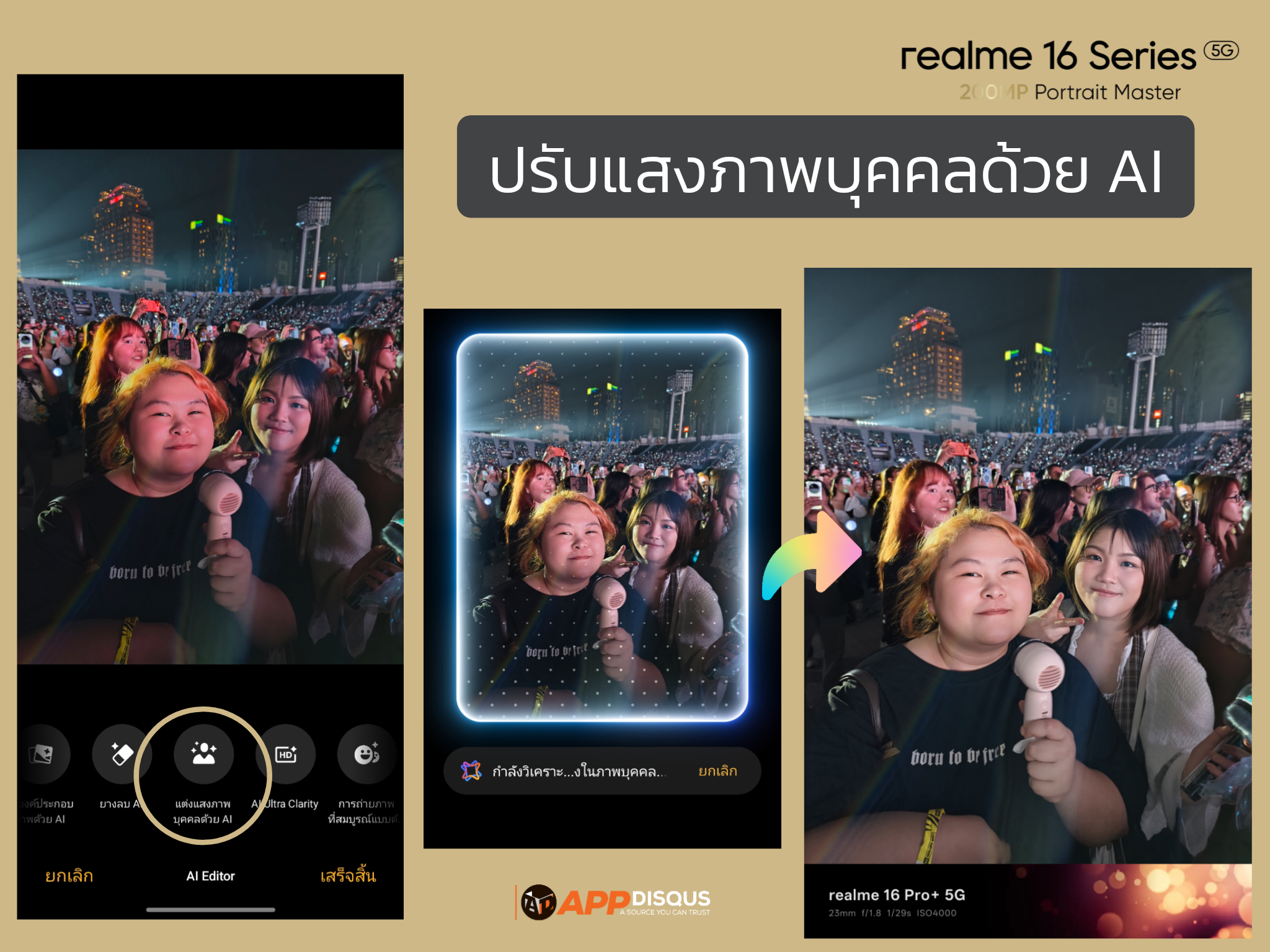 เครื่องมือเหล่านี้ใน realme 16 Pro Series จะช่วยให้ผู้ใช้สามารถสร้างสรรค์และปรับแต่งภาพได้สะดวกมากขึ้นครับ ใช้พลังของ AI เพื่อช่วยให้ภาพถ่ายดูสมบูรณ์และน่าสนใจ โดยไม่ต้องลงแอปเพิ่ม หรือเสียตังค์สมัครใช้บริการ AI เจ้าอื่นๆ ภายนอก