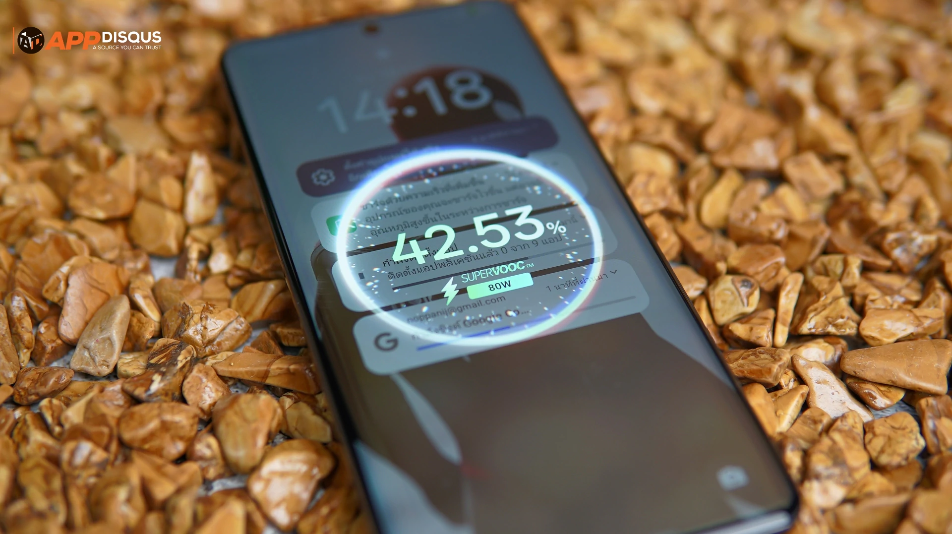 ตัวเครื่องรองรับระบบชาร์จเร็ว 80W SUPERVOOC ซึ่งช่วยเติมพลังงานให้แบตเตอรี่ได้อย่างรวดเร็ว ภายในกล่องมีอุปกรณ์มาให้ครบทั้งหัวชาร์จ สายชาร์จ และเคสใสซิลิโคน