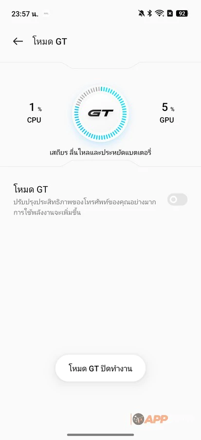 โดยเราสามารถปรับระดับการใช้พลังงานได้ด้วยตัวเองด้วยนะครับ โดยเฉพาะ GT Mode ที่จะเร่งประสิทธิภาพเครื่องให้สูงที่สุด แต่อาจจะแลกกับการใช้พลังงานที่มากขึ้น ใช้งานในอุณหภูมิห้องไม่มีปัญหา แต่ว่าถ้านำไปใช้งานกลางแจ้งในที่อากาศร้อน ตัวเครื่องอาจจะมีอุณหภูมิมากขึ้นเร็วสักหน่อยนะครับ