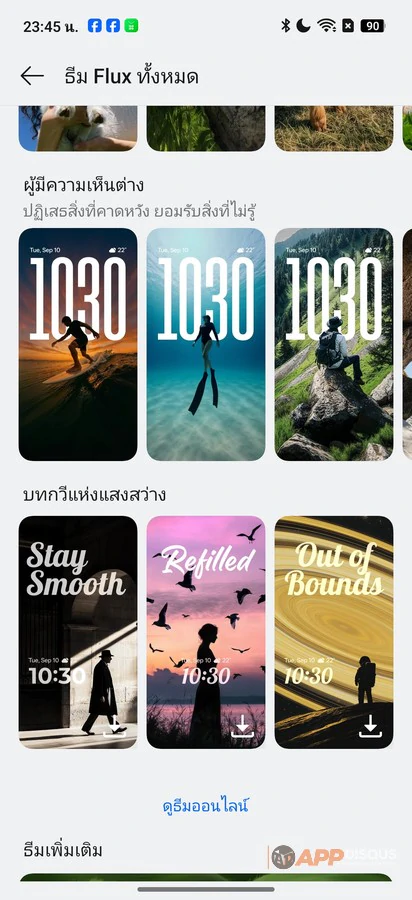การปรับแต่งทำได้เยอะมาตั้งแต่หน้าจอล็อกเลยครับ ช่วยให้เราสามารถปรับแต่ง UI ได้หลากหลาย เป็นระบบที่ดูมีชีวิตชีวามาก และตอบสนองต่อการใช้งานได้ดีจริง ใช้งานติดนิ้ว ไม่แลค ไม่ค้าง หรือมีปัญหาเลยตลอดระยะในการทดสอบใช้งาน