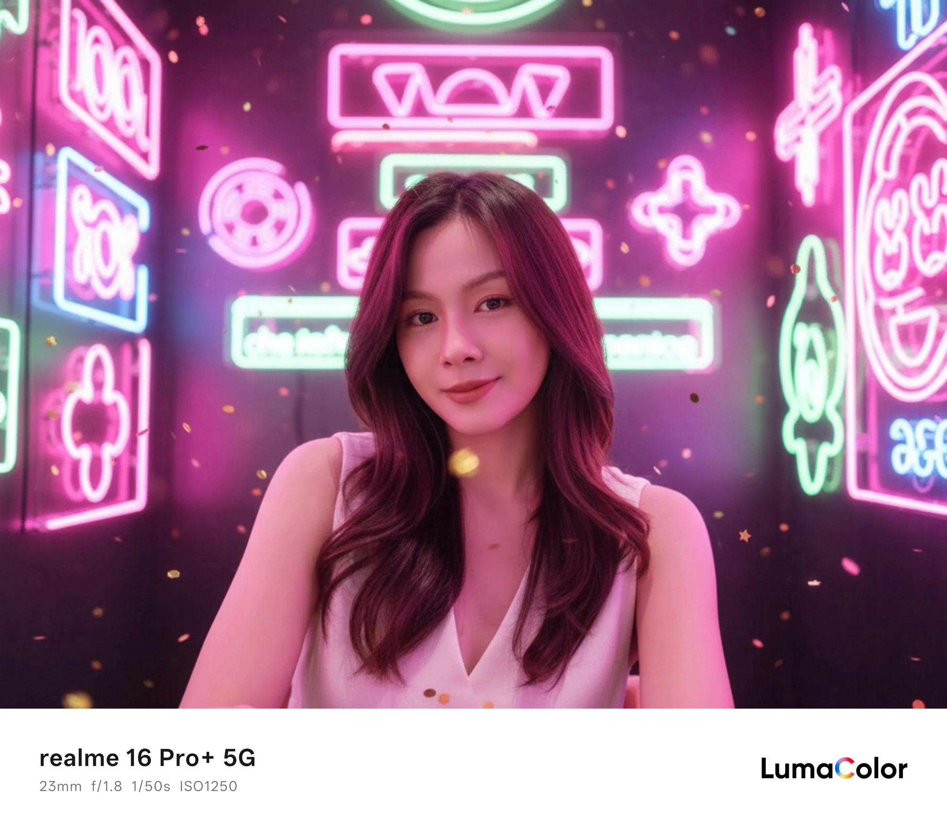 หัวใจสำคัญของระบบกล้องใน realme 16 Pro Series คือเทคโนโลยีประมวลผลภาพ LumaColor IMAGE ซึ่งถูกพัฒนาขึ้นเพื่อยกระดับความแม่นยำของสีและคุณภาพของภาพถ่าย โดยระบบนี้ผ่านการรับรองมาตรฐานจาก TÜV Rheinland ซึ่งเป็นองค์กรทดสอบมาตรฐานระดับสากล ทำให้ LumaColor IMAGE กลายเป็นมาตรฐานด้านการประมวลผลภาพที่พัฒนาขึ้นร่วมกับห้องปฏิบัติการ LumaColor IMAGE LAB เพื่อทดสอบการถ่ายภาพในสภาพแสงหลากหลายรูปแบบ ตั้งแต่แสงธรรมชาติไปจนถึงแสงที่มีความซับซ้อน เพื่อให้การถ่ายทอดสีมีความแม่นยำและคงรายละเอียดของภาพได้มากที่สุด