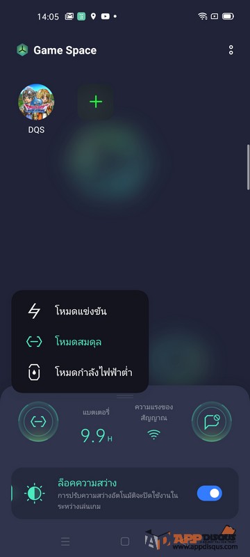 และโหมดสำคัญสำหรับการเล่นเกม “Game Space” หน้าสวยๆ ที่ออกแบบเพื่อคนสายเกม ^^ เป็นหน้าที่เอาไว้เซ็คเครื่องให้เหมาะกับการเล่นเกมในระดับที่เราต้องการครับ อยากจะเล่นชิวๆ แบบประหยัดแบตก็ทำได้ใน “โหมดกำลังไฟฟ้าต่ำ” หรือจะต้องการเล่นเกมจริงจังไม่อยากให้ใครรบกวนก็เปิด “โหมดแข่งขัน” ก็จะเป็นการรีดประสิทธิภาพเครื่อง และปิดกั้นการติดต่อที่อาจจะมาขัดจังหวะเราเล่นเกมได้ครับ