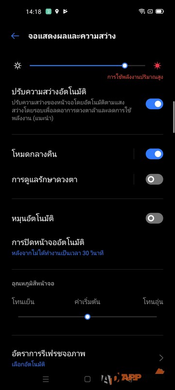 นอกจากโหมดมืดที่ช่วยให้สบายตาแล้ว ก็ยังมีโหมดสำหรับการดูแลรักษาดวงตาด้วยนะครับ โดยจะเป็นการลดแสงสีฟ้าของหน้าจอลงและปรับโทนสีให้สบายตามากขึ้นได้ครับ