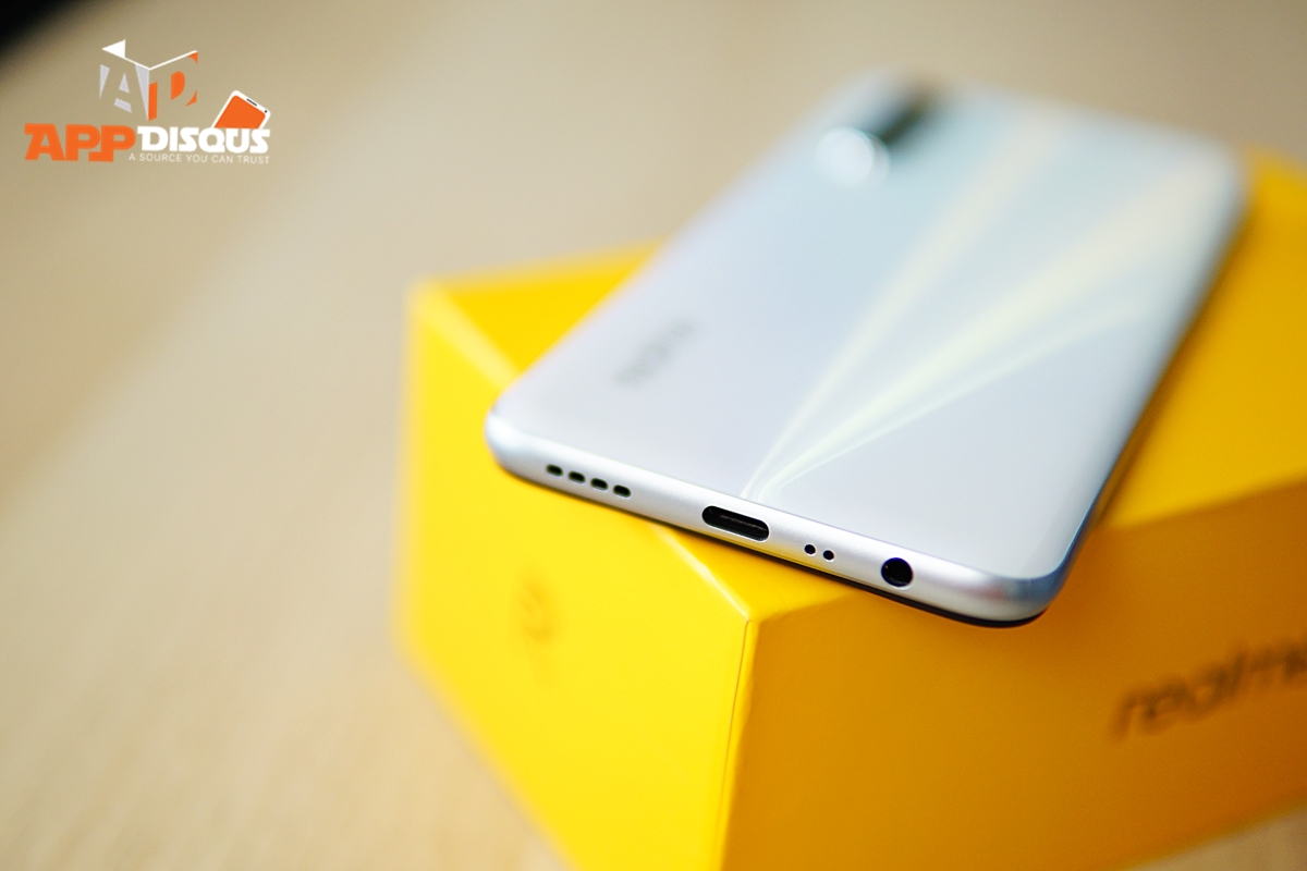 ตัวเครื่องผิวสัมผัสดีแหละครับ ดูมีความสวยงาม มีความเอาใจใส่ ไม่ใช่แค่จะทำมาขายกันแค่เครื่องราคาประหยัดทั่วไป งานประกอบแน่นหนา มีรูหูฟัง 3.5 mm และใช้พอร์ทชาร์จใต้เครื่องเป็น USB-C ข้างๆ ลำโพงเดี่ยว ที่ให้เสียงดังชัดเจนดีมากสำหรับลำโพงของ realme 6