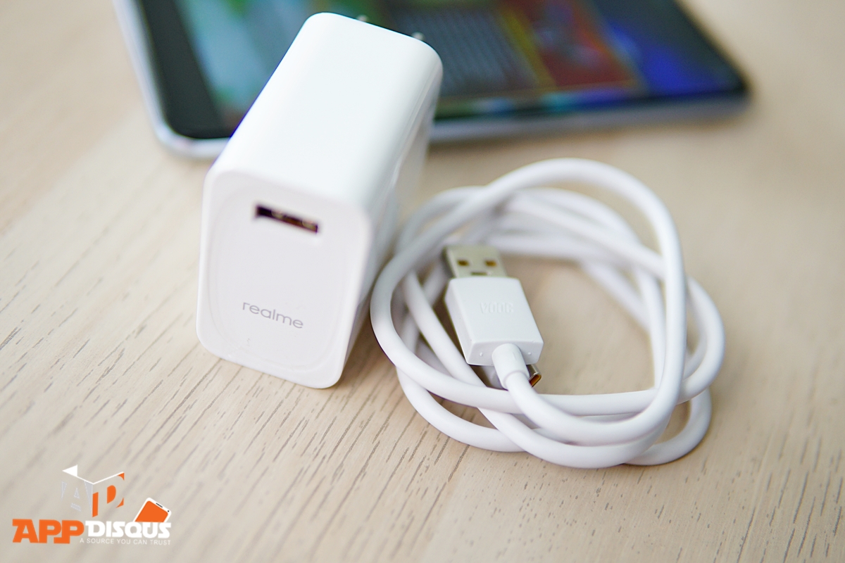 อุปกรณ๋ภายในกล่องไม่มีชุดหูฟังมาให้นะครับ แต่มีเคสใสซิลิโคน สาย USB และที่ชาร์จซึ่งรองรับระบบ VOOC Flash Charge 30W ซึ่งชุดชาร์จตัวนี้มีการออกแบบระบบป้องกันความปลอดภัยขณะชาร์จไว้อย่างดี ปกป้องความปลอดภัยด้วยการตรวจสอบ 5 ขั้นตอนตั้งแต่หัวชาร์จไปตลอดสายจนถึงตัวสมาร์ทโฟน ฉะนั้นค่อนข้างสบายใจได้เลยกับระบบชาร์จ VOOC 30W ของ realme 6 ชาร์จไวและยังมีความปลอดภัยสูงมากๆ ครับ