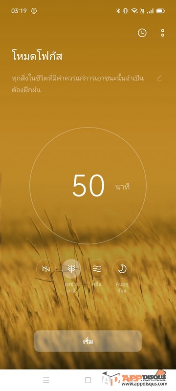 มีฟังก์ชั่นเด่นที่น่าสนใจอย่าง “โหมดโฟกัส” สำหรับใครที่วุ่นวายมาทั้งวัน ต้องการที่จะพักและทำสมาธิกับการพักผ่อนหรือการทำงาน ทาง realme เขามีการออกแบบโหมดพิเศษ ที่จะปิดกั้นความวุ่นวายจากภายนอก พักการติดต่อสื่อสาร และส่งเสริมให้เราได้สร้างสมาธิและความสงบในจิตใจ ด้วยการปิดการแจ้งเตือนและเปิดดนตรีบำบัด ที่เราสามารถเลือกบรรยากาศเสียงโดยรอบให้เป็นแบบที่จะช่วยให้เราผ่อนคลายได้ เช่นเสียงดนตรีของทุ่งข้าวสาลีสีทองที่สงบและแผ่วเบา เสียงคลื่นกระทบฝั่งที่ให้ความรู้สึกผ่อนคลาย หรือจะเป็นเสียงจากแมลงและบรรยากาศยามค่ำคืน มันช่วยให้เราเบาลงได้ในวันที่มันเมื่อยล้า หรือเวลาที่เราต้องการสมาธิกับตัวเองครับ