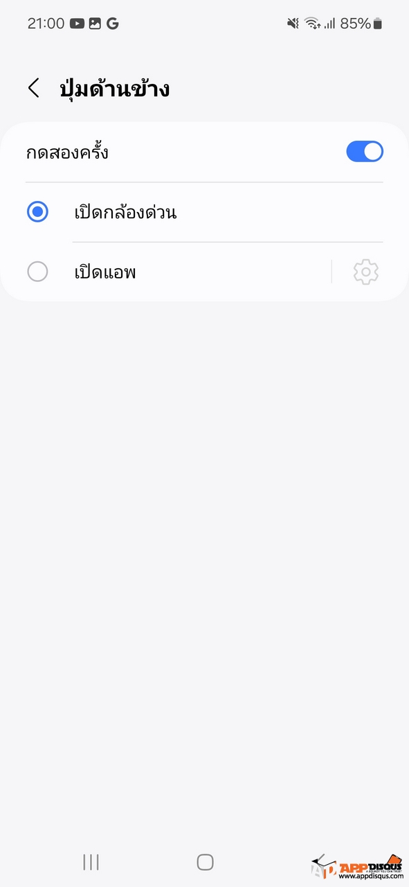 มีฟังก์ชั่นช่วยเหลือเพิ่มความสะดวกให้กับผู้ใช้อีกหลายอย่างใน Galaxy A16 5G ครับ เช่น การกำหนดหน้าที่ให้ปุ่มพาวเวอร์ด้านข้าง สามารถเป็นปุ่มเรียกใช้งานลัดได้ สามารถกำหนดให้เป็นปุ่มเรียกใช้งานกล้องด่วนโดยการกดปุ่มพาวเวอร์สองครั้ง หรือให้เป็นการเปิดแอปพลิเคชั่นที่เราต้องการได้ครับ ซึ่งสามารถกดเรียกใช้ได้ตั้งแต่ยังไม่ได้ปลุกหน้าจอ