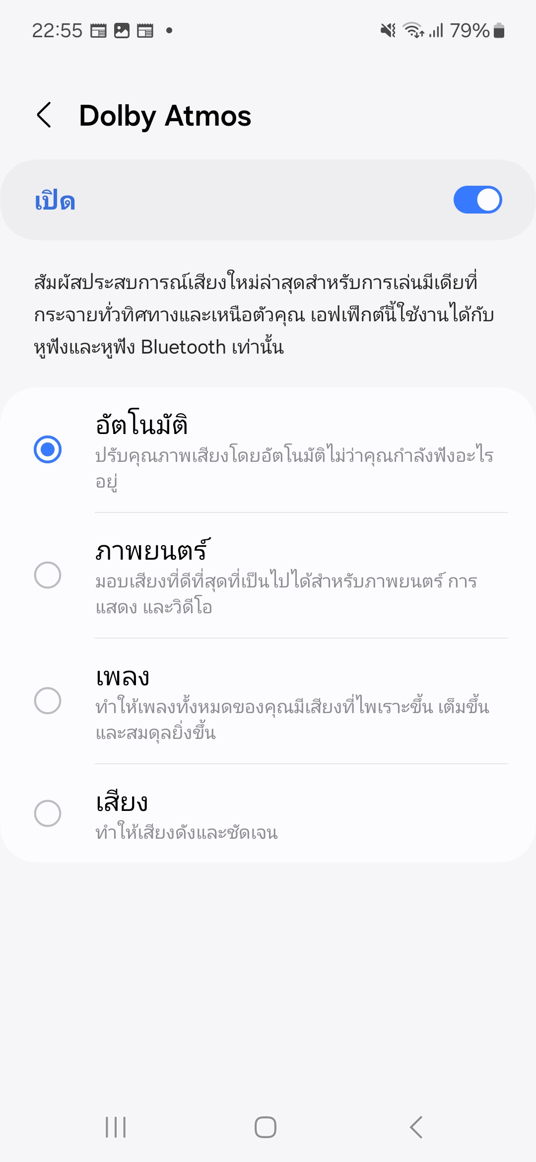 ในด้านของเสียงเครื่องรุ่นนี้ให้มาเป็นลำโพงเดี่ยวตัวเดียว แต่เสียงดังชัดครับ ความดังของเสียงไม่มีปัญหา และแม้เครื่องรุ่นนี้จะไม่มีรูหูฟัง 3.5 มม. มาให้ แต่ก็ยังรองรับระบบเสียง Dolby Atmos ถ้ามีการ เชื่อมต่อกับหูฟังผ่านทางบลูทูธ หรือ ผ่านสาย USB Type-C ด้านใต้เครื่อง ก็สามารถเข้ามาเปิดระบบเสียง Dolby Atmos และ Dolby Atmos สำหรับเพิ่มมิติเสียงในการเล่นเกม ได้ในการตั้งค่าเสียงครับ