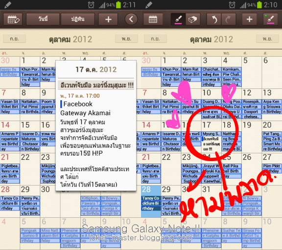 ใน Samsung Galaxy Note II สามารถเขียนข้อความต่างลงบน S Planner ได้แล้ว คราวนี้ก็ใช้งานแบบที่พวกอากงอาม่าชอบเขียนนัดหมายต่างๆเอาใว้บนปฏิทินกันได้เลย อิอิ