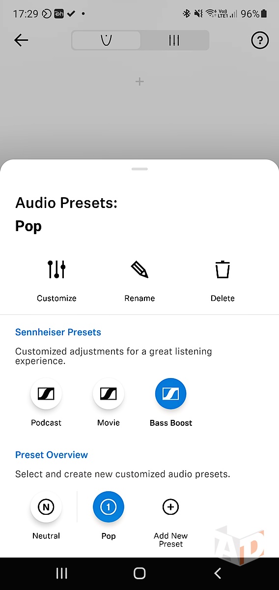 Built-in Equalizer & Bass Boost ฟังก์ชั่นการปรับแต่งเสียงที่มีในตัว (Built-in Equalizer) ผ่านแอปฯ Sennheiser Smart Control ปรับแต่งได้ตามความต้องการของผู้ใช้งาน ฟังก์ชั่นการปรับแต่งเสียง (EQ) ที่มาพร้อมกันยังช่วยปรับแต่งได้ตามความต้องการของผู้ใช้งาน แอดการตั้งค่า EQ ที่เราปรับแล้วตั้งชื่อได้ใหม่ด้วย อีกทั้งยังตั้งค่ำ Bass Boost ที่ทรงพลังได้ล่วงหน้ำอีกด้วย เสียงสเตอริโอที่มีความเที่ยงตรงสูง พร้อมกับเสียงเบสที่นุ่ม ทุ้ม เสียงกลางที่ชัดเป็นธรรมชาติและเสียงสูงที่มีความละเอียดปราณีต
