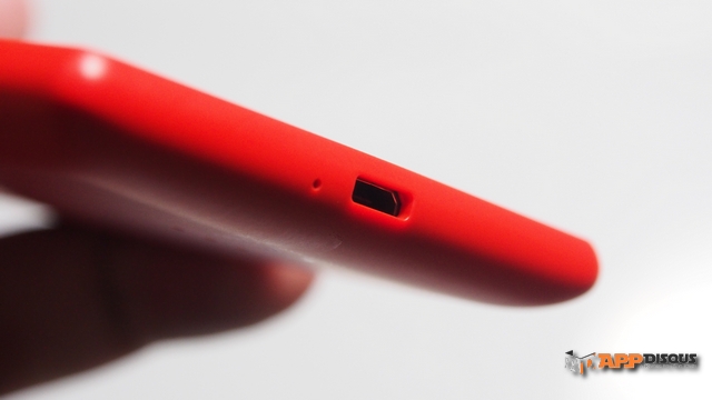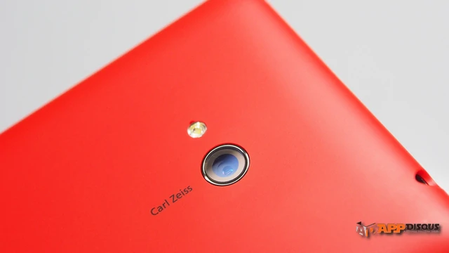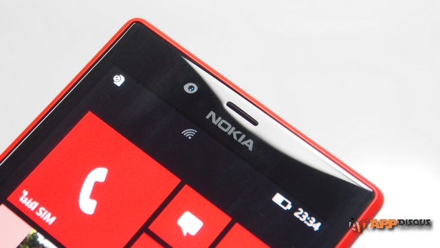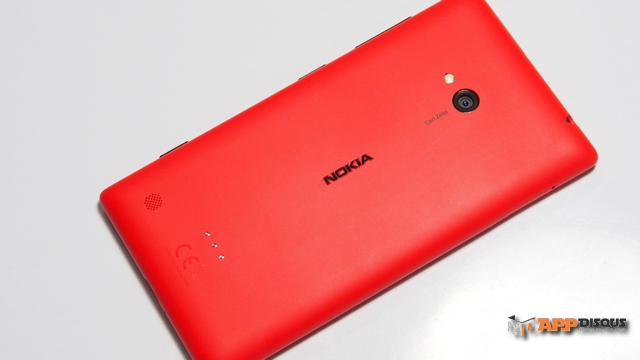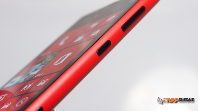 ตัวเครื่องเป็นกึ่ง Unibody ไม่สามารถถอดฝาหลังได้ แต่มีขนาดที่บางเบากว่า Lumia 820 เล็กน้อย โดยเฉพาะการออกแบบในเรื่องทรงเครื่องที่ออกแนวยาวมากกว่ารุ่นพี่ของมัน ตัวเครื่องสีแดงที่ได้รับมาทดสอบเป็นวัสดุแบบด้าน ผิวสัมผัสดีน่าใช้ตาสไตล์ของเครื่องจาก Nokia