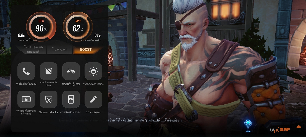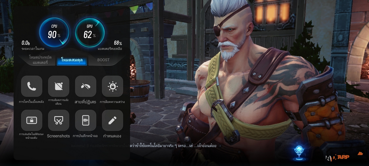 เรียกใช้งานเครื่องมือสำหรับการเล่นเกมได้จากการสไลด์หน้าจอจากด้านข้าง ประสิทธิภาพของ Dimensity 900 เอามาเล่นเกมก็นับว่าลื่นสุดๆ แล้วครับ อยู่ในระดับแรงเพียงพอสำหรับการใช้งานในทุกอย่างบนระบบ Android แล้วครับ