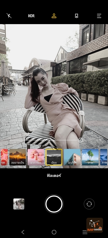 สามารถถ่ายหน้าชัดหลังเบลอด้วยกล้องหน้าได้ด้วย มีฟิลเตอร์และการปรับแต่งใบหน้าในเนียนสวยได้เหมือนเพิ่งแต่งหน้ามาเลยครับ