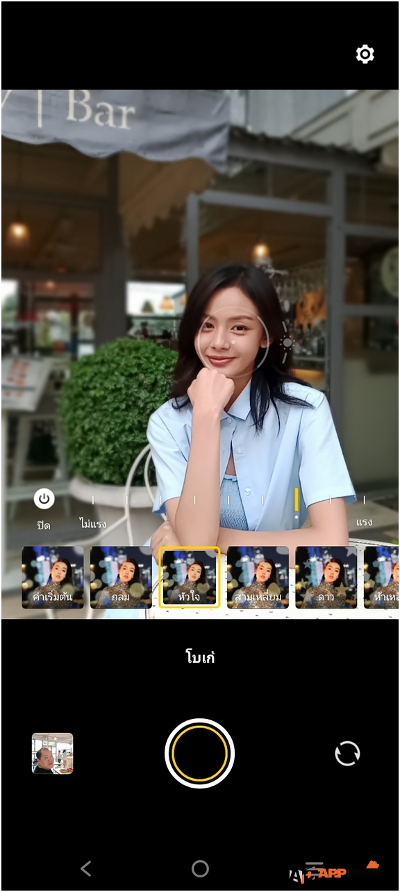 กล้องหน้าความละเอียด 8MP ก็จะมีความสามารถในการเซลฟี่ละลายหลังได้ด้วยครับ เลือกระยะชัดลึกชัดตื้นได้ รวมถึงฟิลเตอร์และสไตล์ภาพ และความสามารถในปรับใบหน้าเนียนใสได้ละเอียดเช่นเดียวกับกล้องหลังครับ