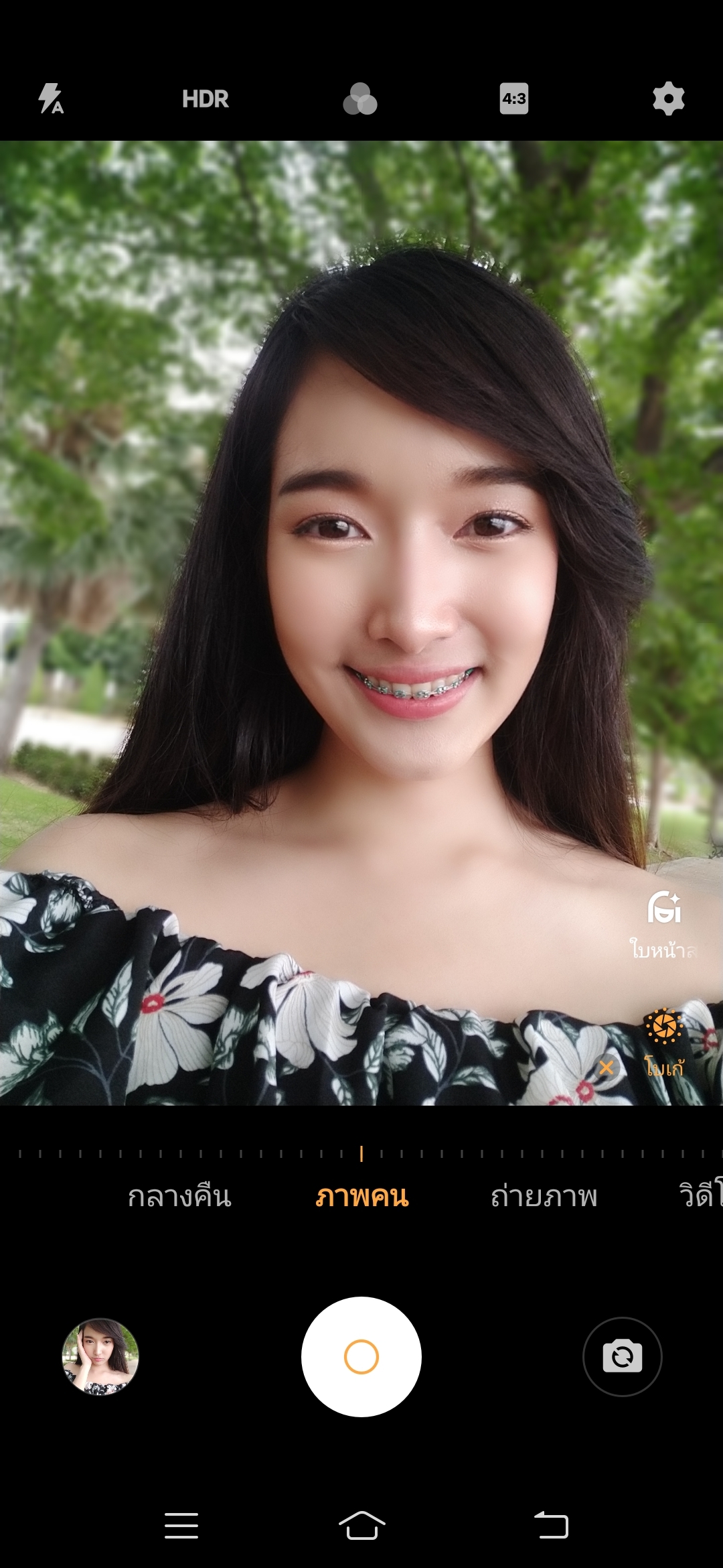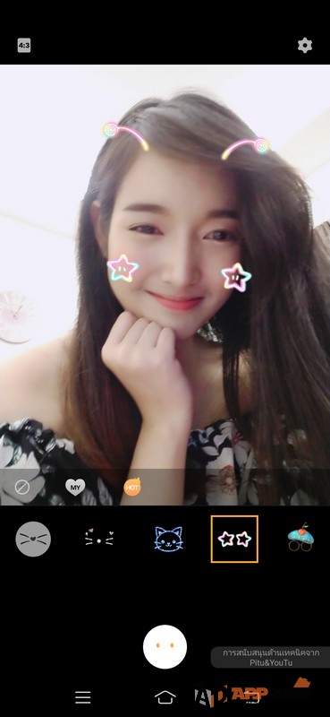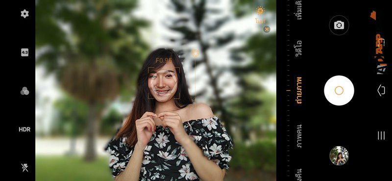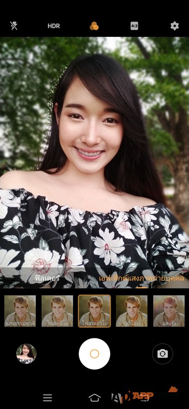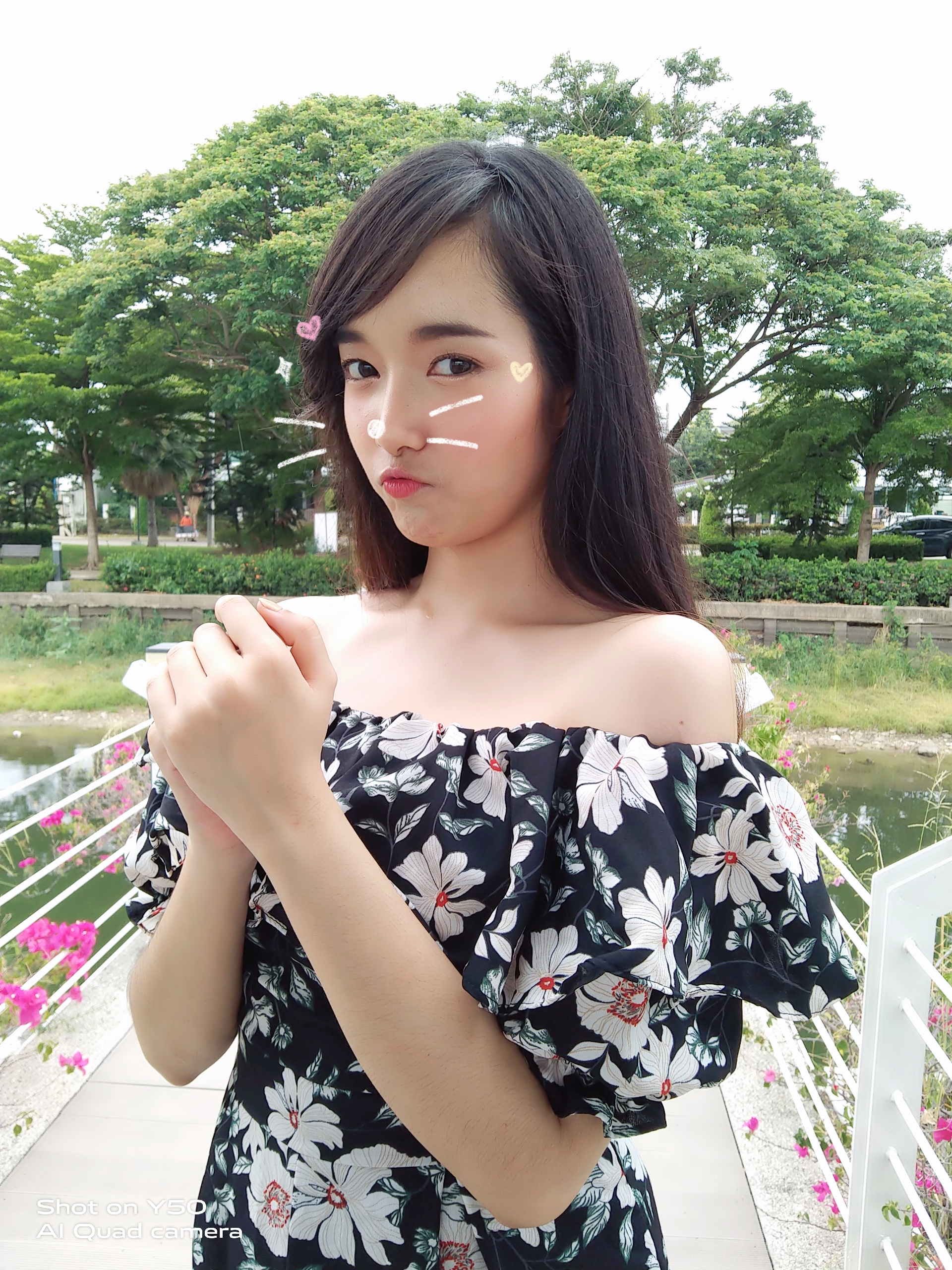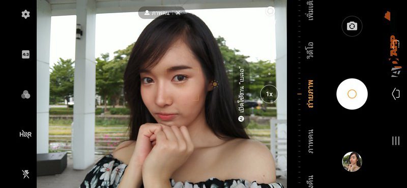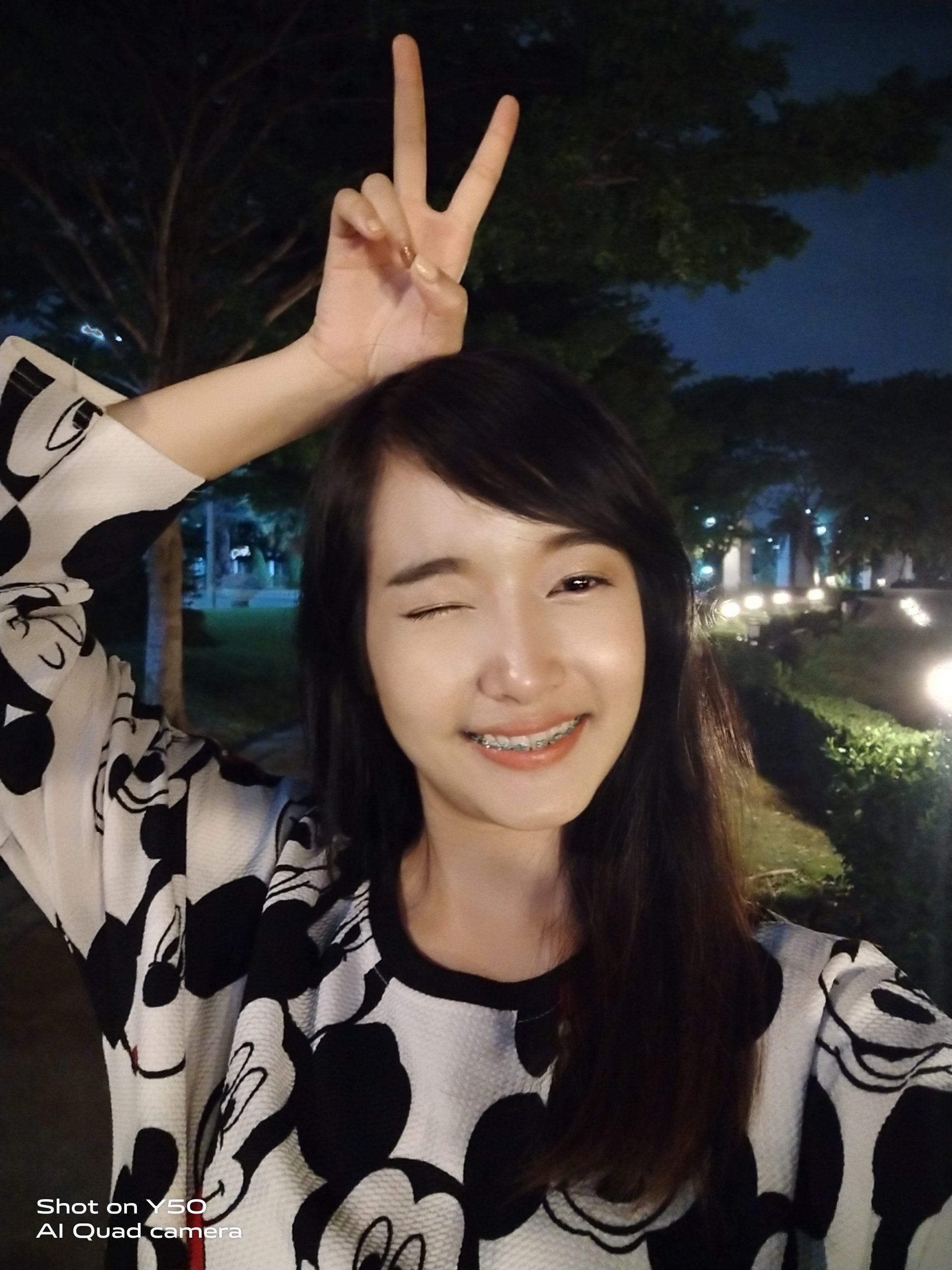 การถ่ายภาพบุคคลของ Vivo ค่อนข้างจะทำได้ดี เพราะตัว AI ของ Vivo จับอวัยวะคนได้แม่นครับ โดยเฉพาะใบหน้า ปรับแต่งได้ละเอียดมาก ทั้งปาก จมูก ตา หน้าผาก ปรับได้หมดในโหมดใบหน้าสวย และมีลูกเล่นสำหรับการใส่ฟิลเตอร์ สติ๊กเกอร์ AR น่ารักๆ มาให้ด้วย สำหรับคนชอบความดุ๊กดิ๊ก ^^