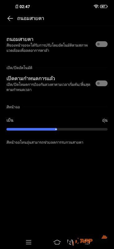 จุดเด่นก็คงจะเป็นเรื่องของหน้าจอแสดงผลนี้แหละ เต็มตามากครับ และยังมีโหมดช่วยในการถนอมสายตาซึ่งจะลดแสงสีฟ้า และ “โหมดมืด” ที่จะเปลี่ยนเมนูและหน้าการใช้งานต่างๆ ให้กลายเป็นสีดำ