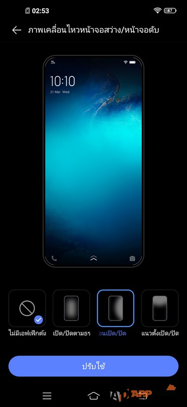 ใครชอบหน้า UI สวยๆ คงจะชอบ Funtouch OS 10 ของ Vivo แหละครับ ปรับได้เยอะ โดยเฉพาะของใหม่ที่เป็น “เอฟเฟ็กต์ไดนามิก” เปิดให้เราปรับแต่งเอฟเฟ็กต์ต่างๆ ของเครื่องได้ เช่นเอฟเฟ็กต์ตอนทำการสแกนใบหน้า เอฟเฟ็กต์ตอนเสียบสาย USB และเอฟเฟ็กต์ตอนเปิดและปิดหน้าจอ ใน Vivo Y50 จะไม่ใช่แค่การทำงานแบบที่เราคุ้นตาเดิมๆ ครับ แต่จะมีลีลาสวยงามเลยแต่ละเอฟเฟ็กต์ ^^