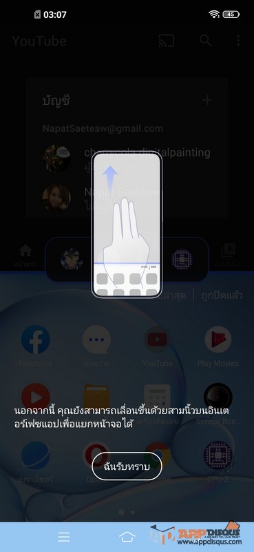 มีโหมดสำหรับช่วยเหลือผู้ใช้ให้ใช้งานได้สะดวกขึ้นเช่นโหมดแบ่งหน้าจอทำงานสองแอพพร้อมกันก็มีใน Vivo Y50 นะครับ หน้าจอใหญ่ๆ ความสามารถนี้ก็จะมีประโยชน์มาก