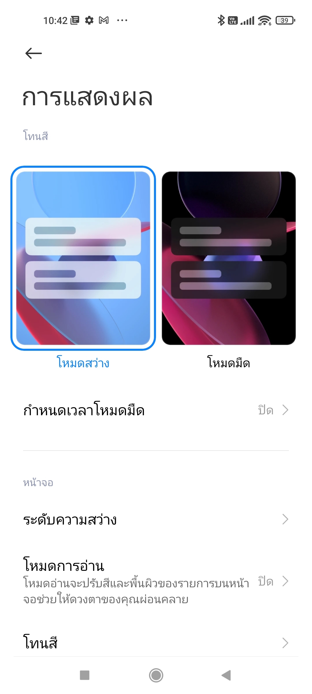 ปรับโทนสีหน้าจอได้สี่ระดับตามระดับความเข้มข้นที่อยากได้ และเลือกโหมดขอบเขตสีได้ทั้ง sRGB และมาตรฐานสีแบบ DCI-P3