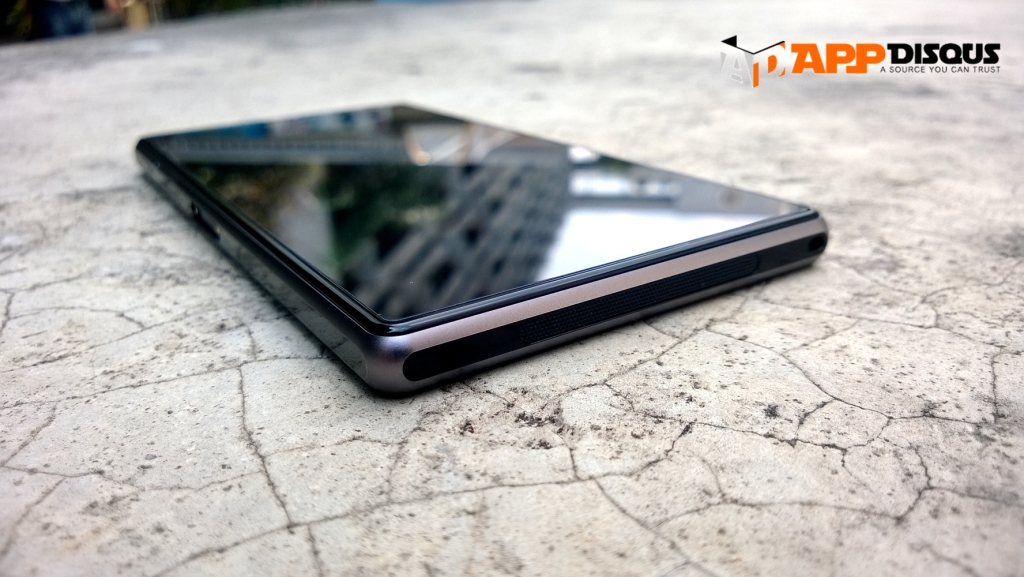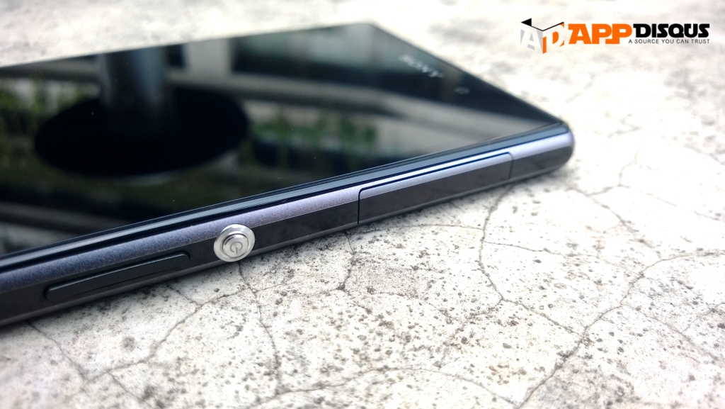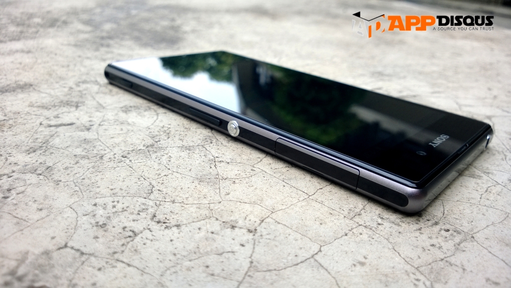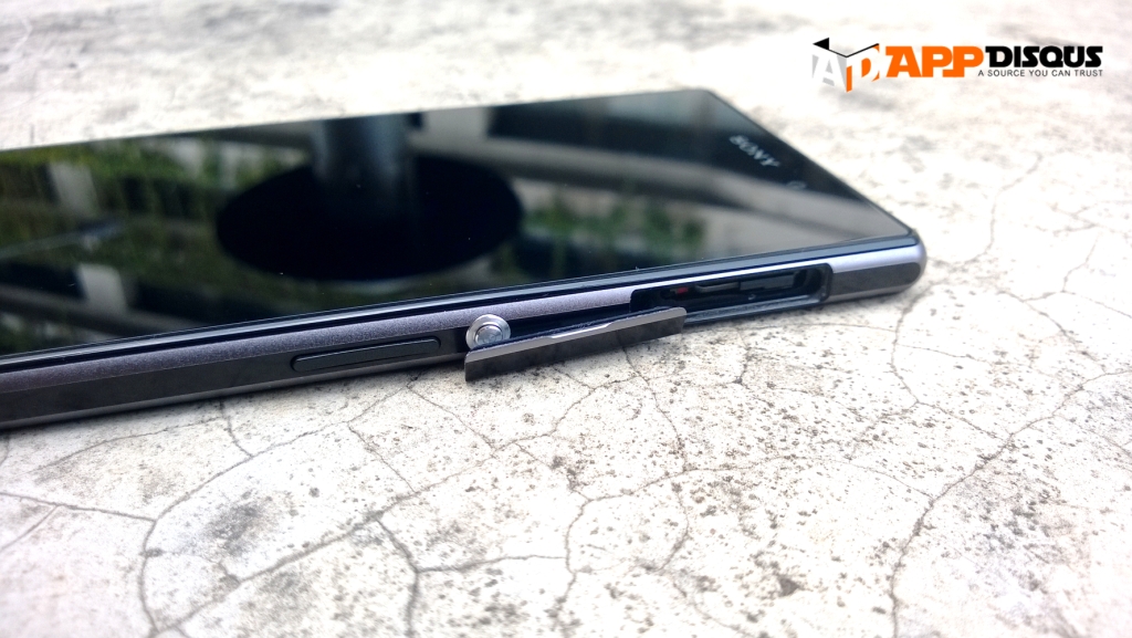 ด้านขวาของตัวเครื่อง จะมีช่องใส่ถาดรอง microSIM พร้อมฝาปิด, ปุ่มเปิด-ปิดเครื่อง ปุ่มปรับระดับเสียง ปุ่มชัตเตอร์กล้อง ซึ่งปุ่มซัตเตอร์ตัวนี้ยังใช้งานได้ไม่ดีนักครับ ทำให้กล้องสั่นเวลาถ่ายพอสมควร
