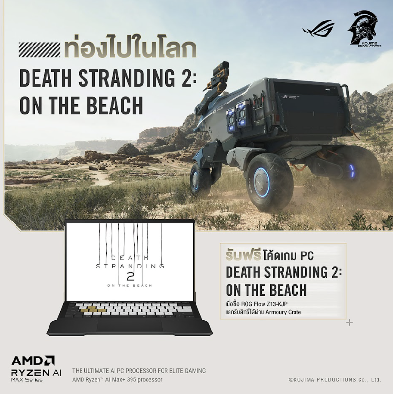 เอซุส ภายใต้แบรนด์รีพับบลิค ออฟ เกมเมอร์ส (ROG) ประกาศวางจำหน่าย ROG Flow Z13-KJP เกมมิ่งแท็บเล็ตที่แรงที่สุดในโลก ใช้โปรเซสเซอร์ AMD Ryzen™ AI Max+ 395 พร้อม RAM มากถึง 128GB ในราคา 109,990 บาท และเป็นสินค้าแบบเอ็กซ์คลูซีฟในไทยมีเพียง 28 เครื่องเท่านั้น! ถือเป็นหนึ่งในคอลเลกชันพิเศษวาระครบรอบ 20 ปีของ ROG ที่ออกแบบร่วมกับค่ายเกม Kojima Productions เพื่อมอบเกมมิ่งแท็บเล็ตที่ตอบโจทย์การใช้งานจริง ควบคู่ไปกับคุณค่าในฐานะไอเทมสะสม สำหรับเกมเมอร์ส ครีเอเตอร์ และนักฝันทั่วโลก รวมไปถึงแฟนคลับของคุณ Hideo Kojima ผู้สร้างเกมชื่อดังระดับโลกอย่าง Death Stranding