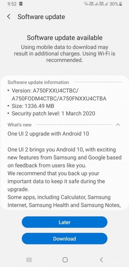 นอกจากฟีเจอร์ใหม่แล้ว One UI 2.0 ยังมาพร้อม security patch ของเดือนมีนาคมด้วย