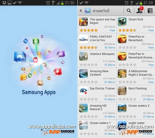 เพื่อนสามารถเข้าไปตรวจสอบรายชื่อเกมและแอพลดราคาได้ใน Samsung Appหรือ Store อีกหนึ่งแหล่งสำหรับชาว Galaxy ซึ่งในขณะนี้มีเกมยานยิงดังๆอย่าง Space war และเกม RPG ชื่อดังระดับตำนาน ที่มาในเวอร์ชั่นภาษาไทย อย่าง FinalFantasy ที่เอามาลดราคา 50% เหลือเพียง 32 บาทเท่านั้นครับ