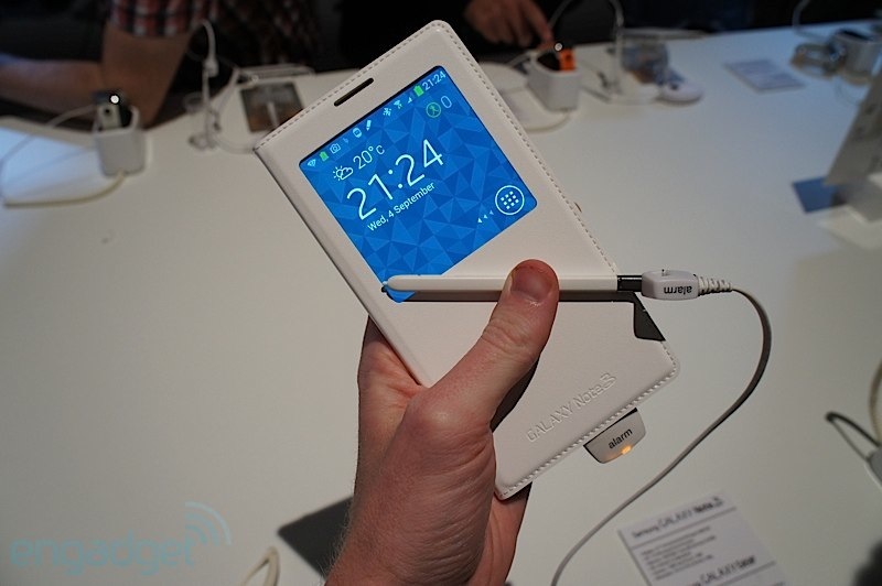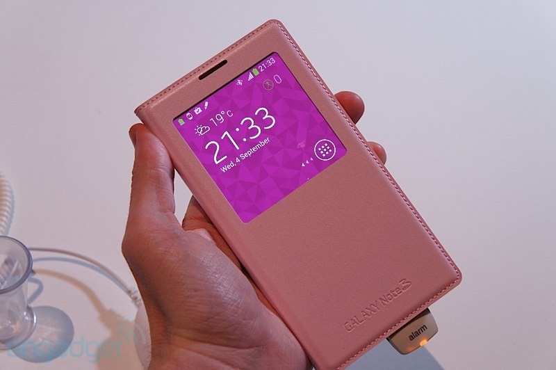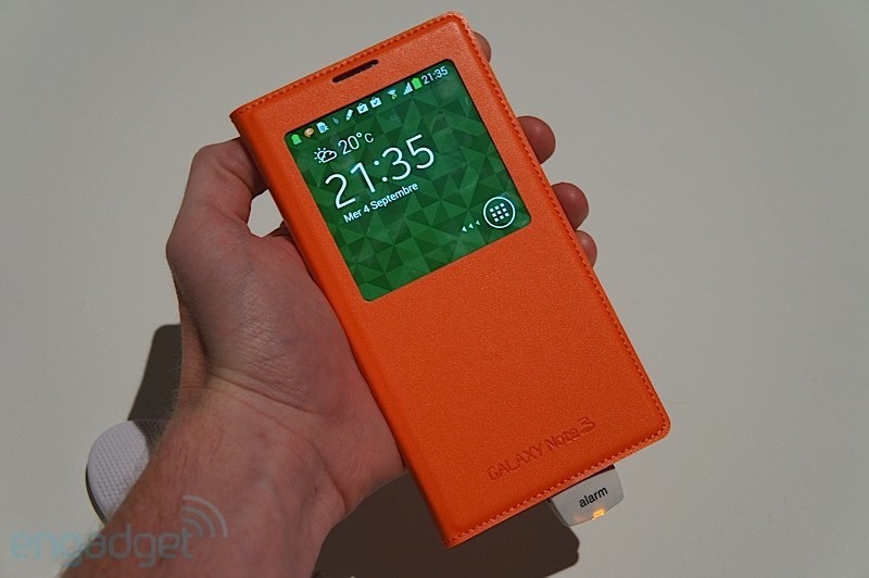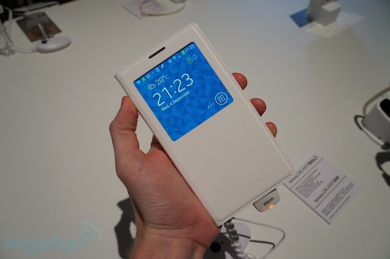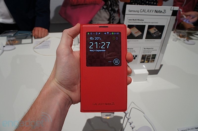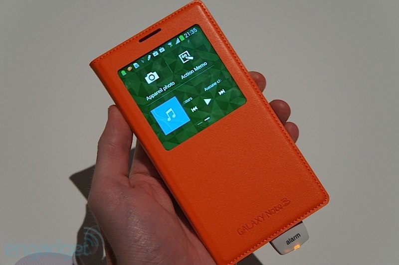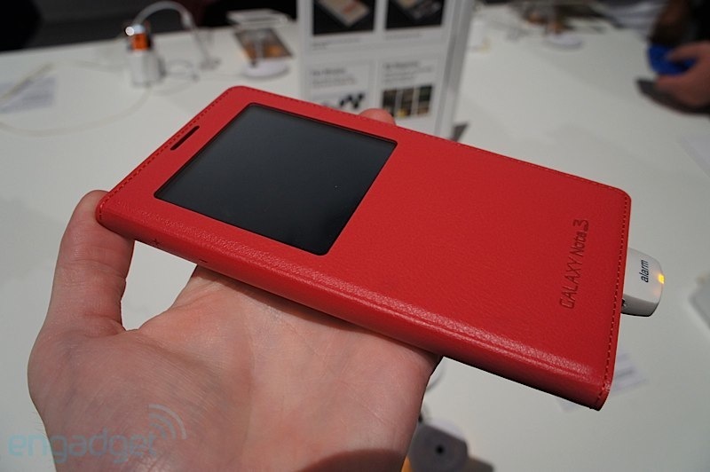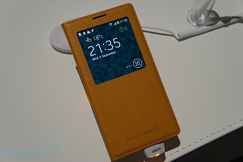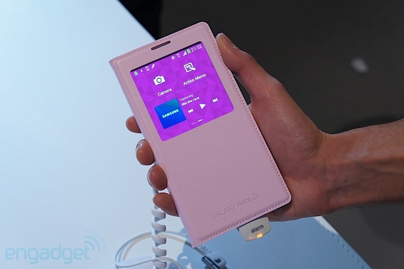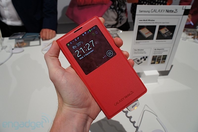 และสำหรับ Galaxy Note 3 ก็มี S-View Cover ของตัวเองออกมาเช่นกันครับ และมาในการออกแบบที่ดูจะมีประโยชน์และสวยงามมากขึ้นอีกด้วย เน้นการออกแบบให้เข้ากันกับ Galaxy note 3 ทำผิววัสดุคล้ายหนังเย็บขอบรอบฝาปิด ช่องมองจอใหญ่กว่าเดิม รายละเอียดมากขึ้น และใช้งานได้มากขึ้นครับ