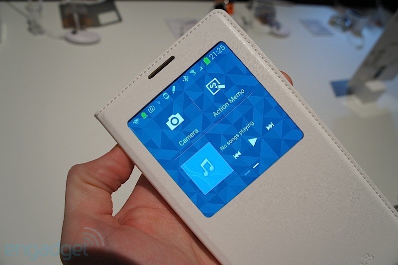 S-View Cover อุปกรณ์เสริมที่ได้รับความนิยมมากที่สุดตั้งแต่ Samsung Galaxy S4 ออกมาวางจำหน่าย เคสฝาปิดที่ออกแบบให้มีช่องใสไว้มองหน้าจอในส่วนที่จะแสดงรายละเอียดให้เราทราบได้โดยไม่ต้องเปิดฝาเคสก่อน