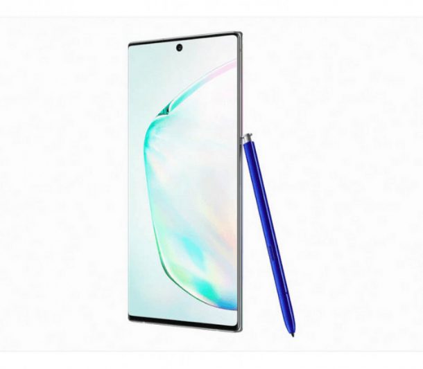 ส่วนอีกภาพเป็นของ ภาพ Samsung Galaxy Note10 รุ่นธรรมดา จะมาพร้อมกับรูปร่างหน้าตาเหมือนกัน แต่มีจำนวนเซ็นเซอร์กล้องที่น้อยกว่า นอกจากนี้ยังมาพร้อมกับภาพชัดๆของปากกา S-Pen ที่มีสีเดียวกับตัวเครื่อง และมีสีเดียวตลอดยกเว้นตรงที่กดด้านบน โดยตัวเครื่องจะมีขอบจอที่บางมาก มาพร้อมกับรูบนหน้าจอเพื่อใส่กล้องหน้าไว้ถ่ายเซลฟี่