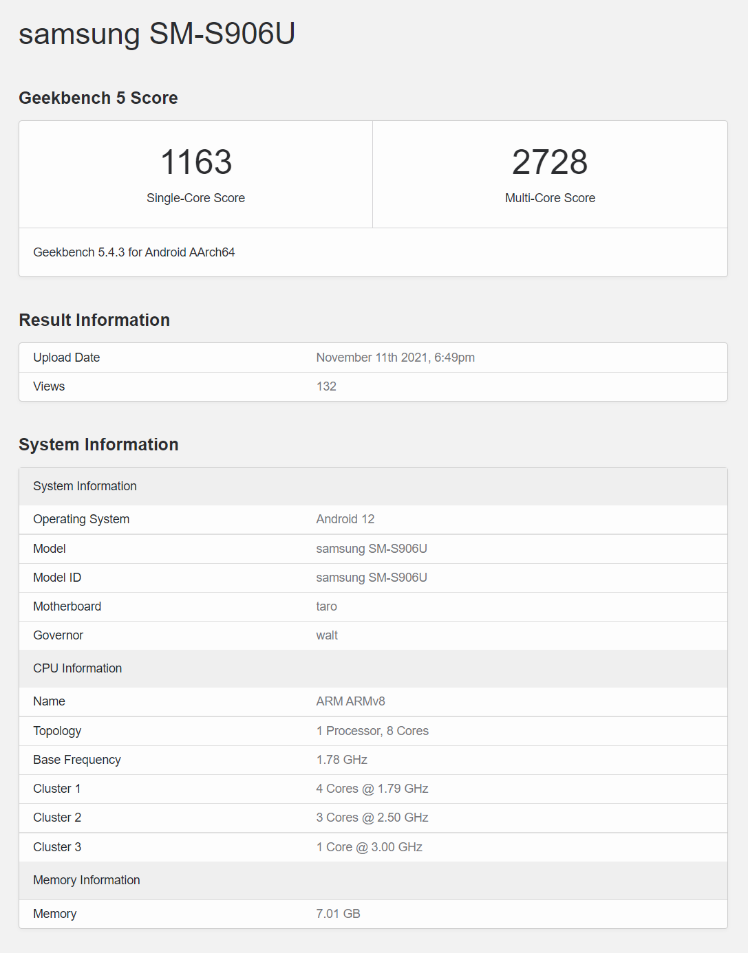 หลุดมาอีกหนึ่งกับคะแนนทดสอบของ Snapdragon 898 โดยคราวนี้ทดสอบบน Samsung Galaxy S22+ ผ่าน Geekbench โดยเป็นโมเดล SM-S906U หรือเป็นรุ่นที่วางจำหน่ายในสหรัฐอเมริกานั่นเอง