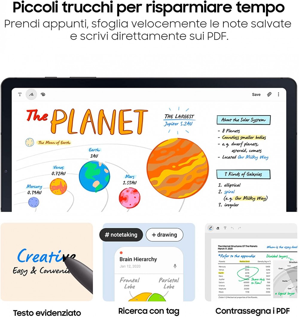 ด้านสเปกอื่น ๆ ยังคล้ายเดิม ได้แก่ หน้าจอ LCD ขนาด 10.4 นิ้ว ความละเอียด 2,000 x 1,200 พิกเซล รองรับการใช้งาน S Pen, RAM 4GB, ROM 64GB รองรับการเพิ่มความจุเครื่องด้วย microSD แบตเตอรี่ความจุ 7,040mAh ลำโพงที่ผ่านการจูนโดย AKG